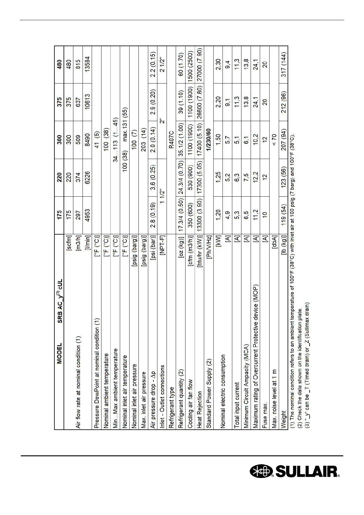 Sullair SR 75AC - Technical Data SR 125-480 NA -E