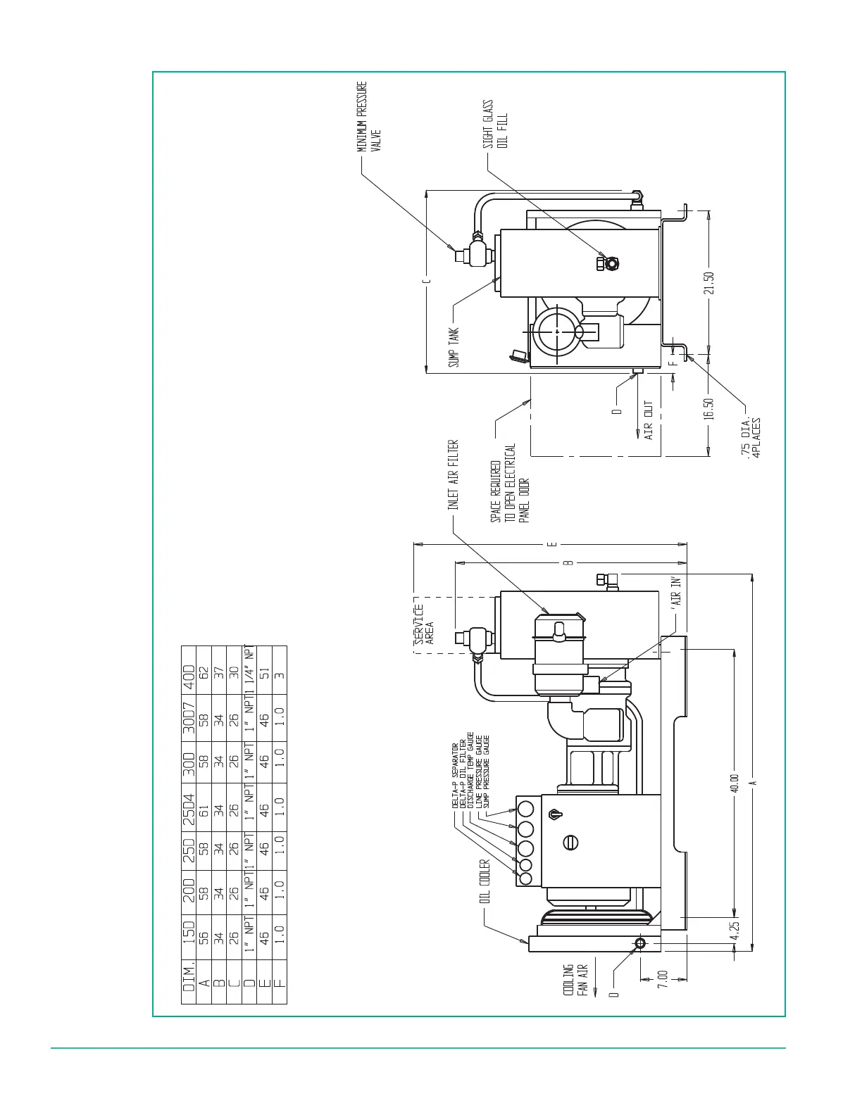 Sullivan-Palatek 40D - Dimensions-Open, Base Mount, Air-Cooled