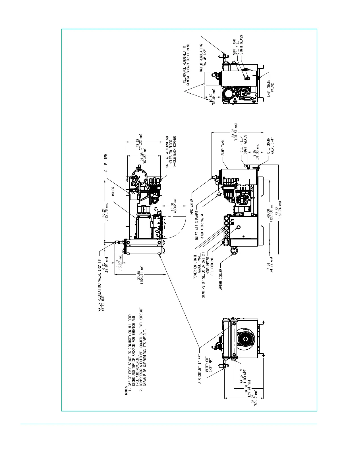 Sullivan-Palatek 40D - Dimensions-Open, Base Mount, Water-Cooled