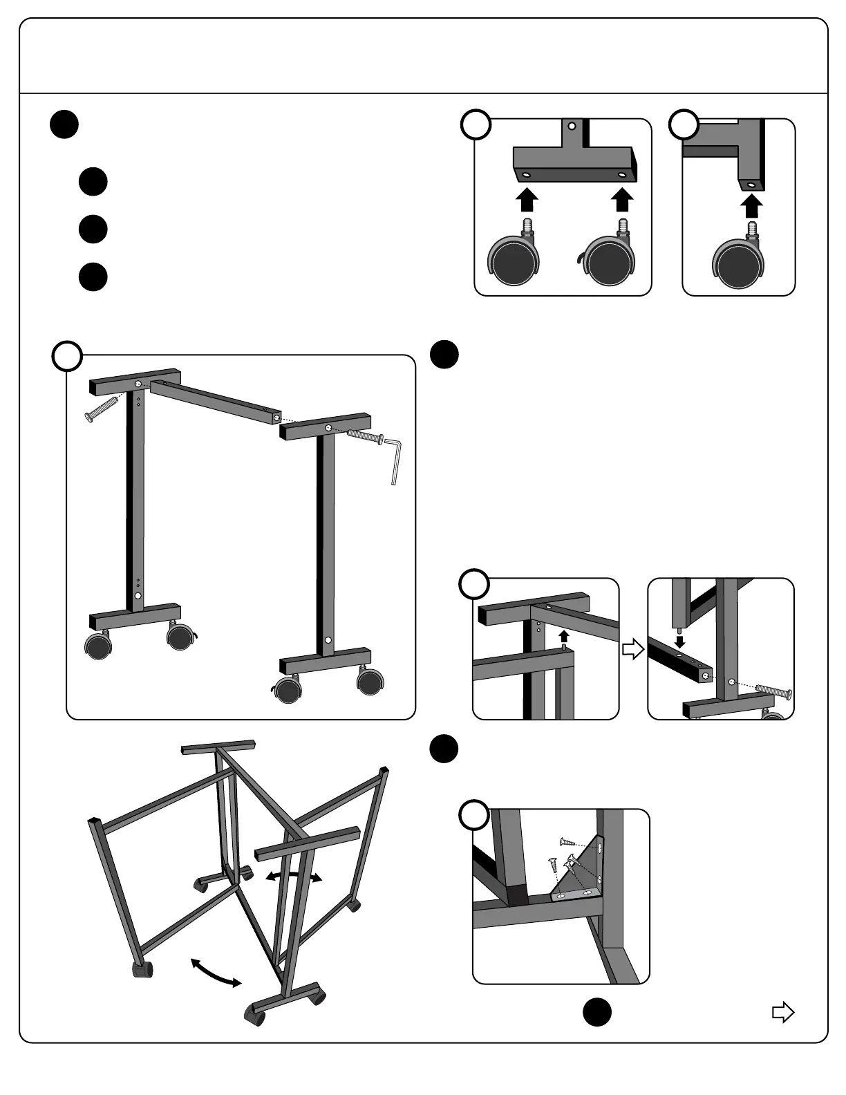 Screw 1 Caster (C1) and 1 Locking Caster (C2) into the