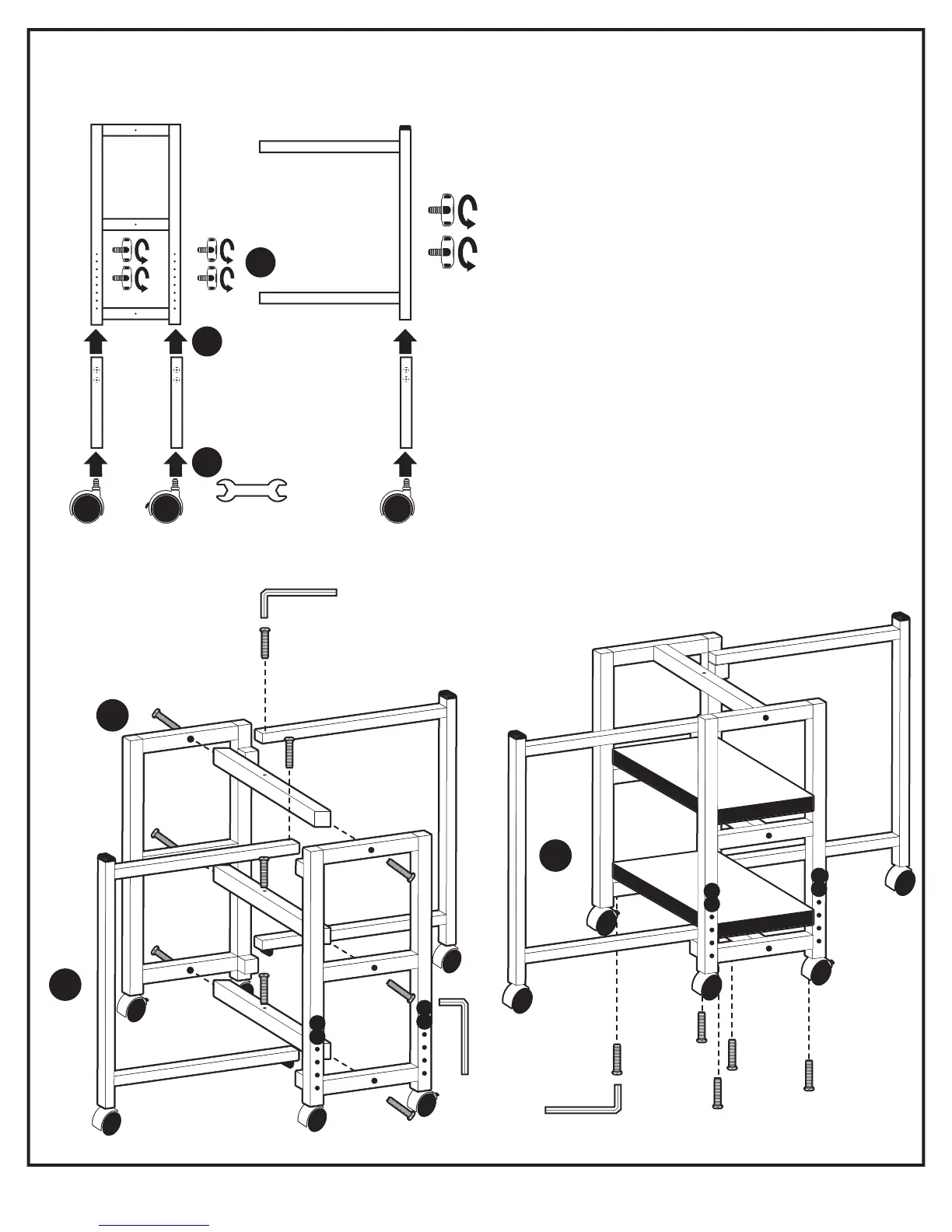 3. Insert 2 CASTERS (K.1) into SWING ARMS (O)
