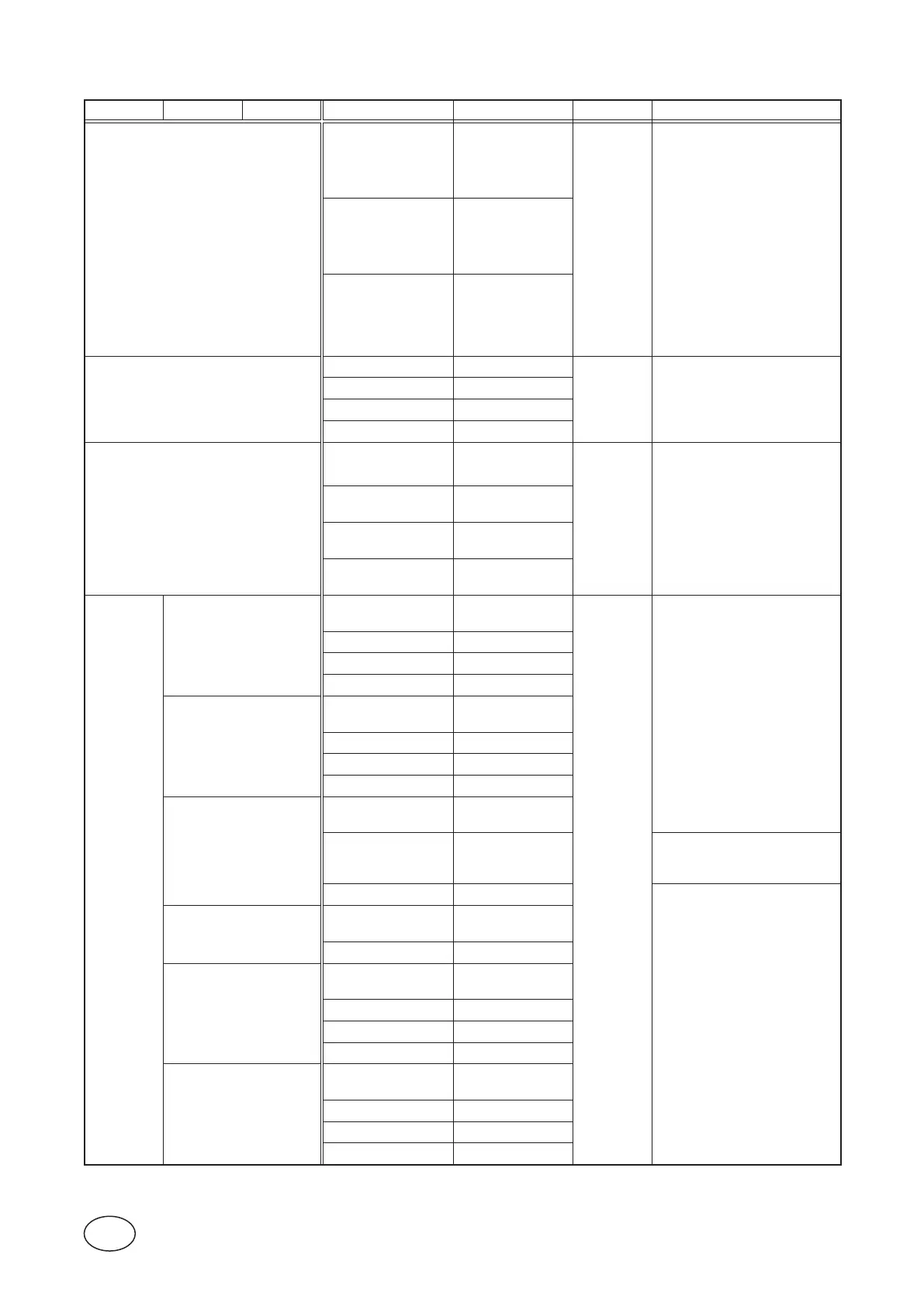 Submenu Submenu Submenu Setting Value Pass code Comment