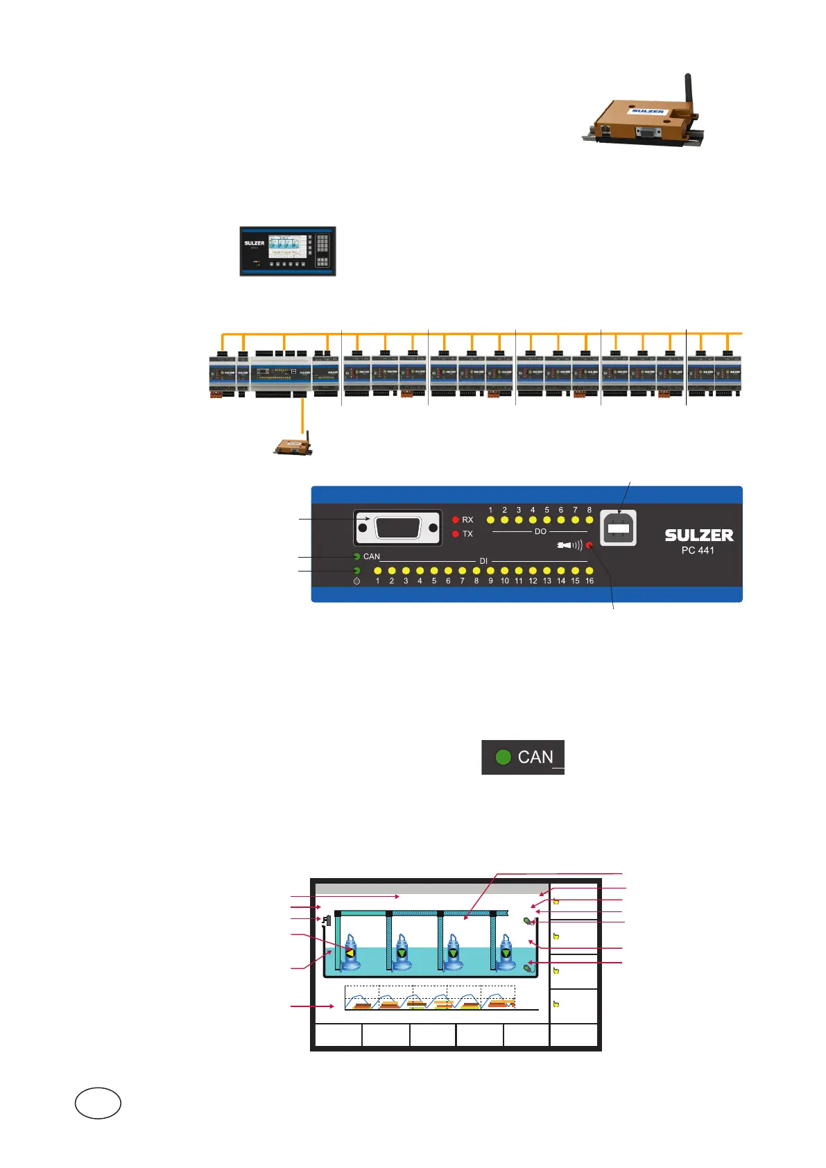 Pumpcontroller,operatorpanelandmonitoringmodulescommunicatesviaaCANbus.