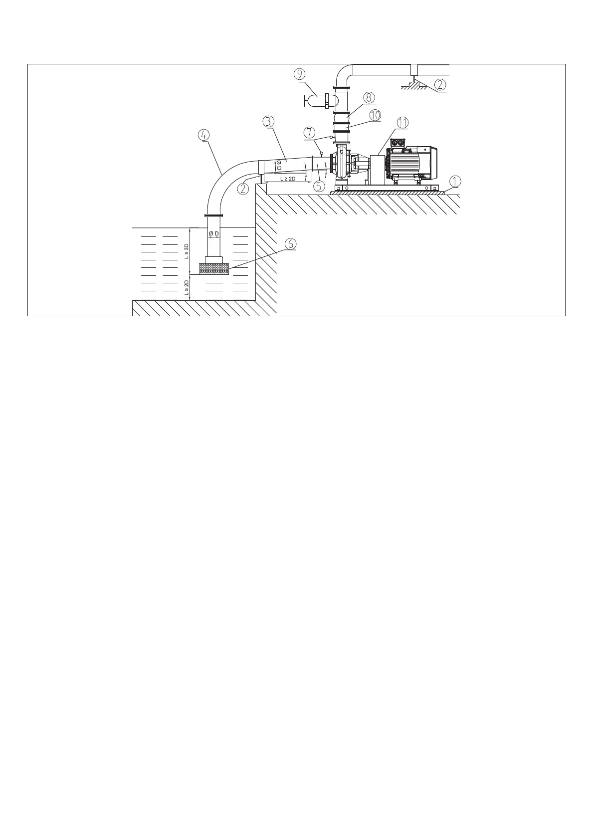 Рекомендации для установки с негативным давлением на всасывании („над уровнем перекачиваемой жидкости“)