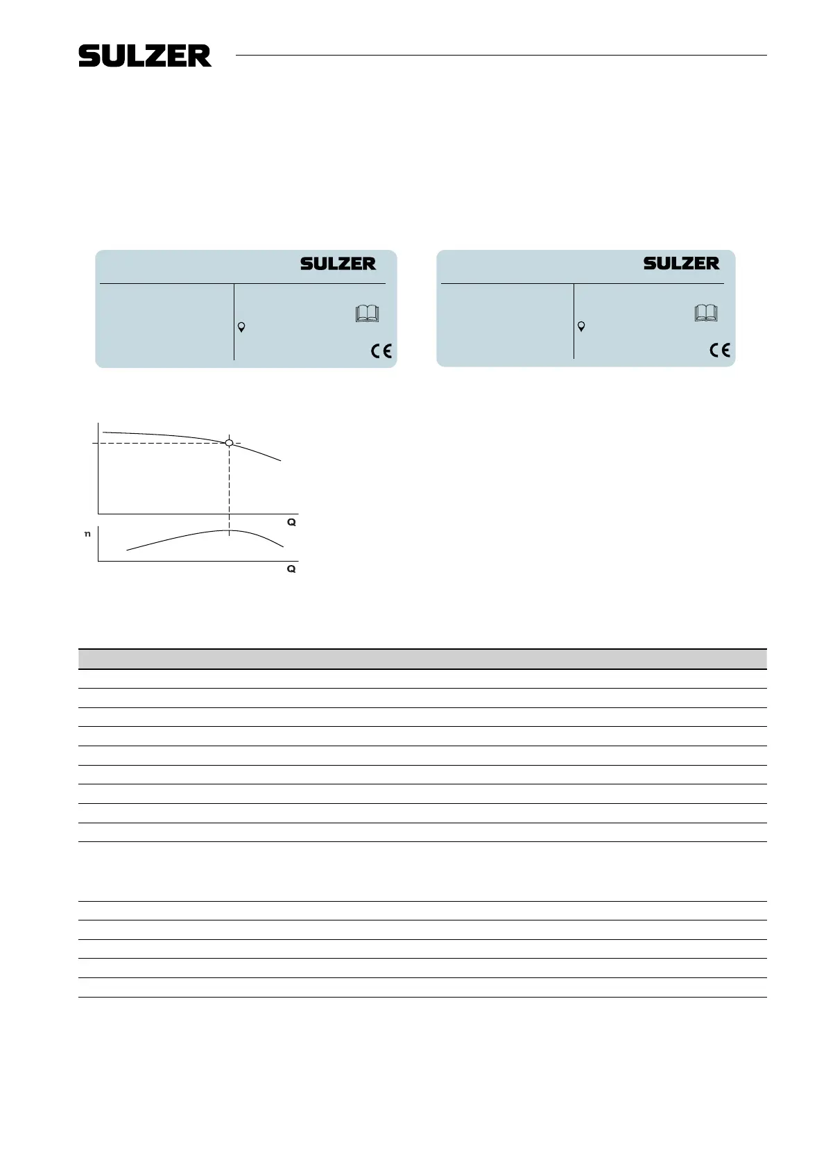 2. When the installed motor power is less than the required power the pump is limited in it’s operating range. Consult your sales representative for details.