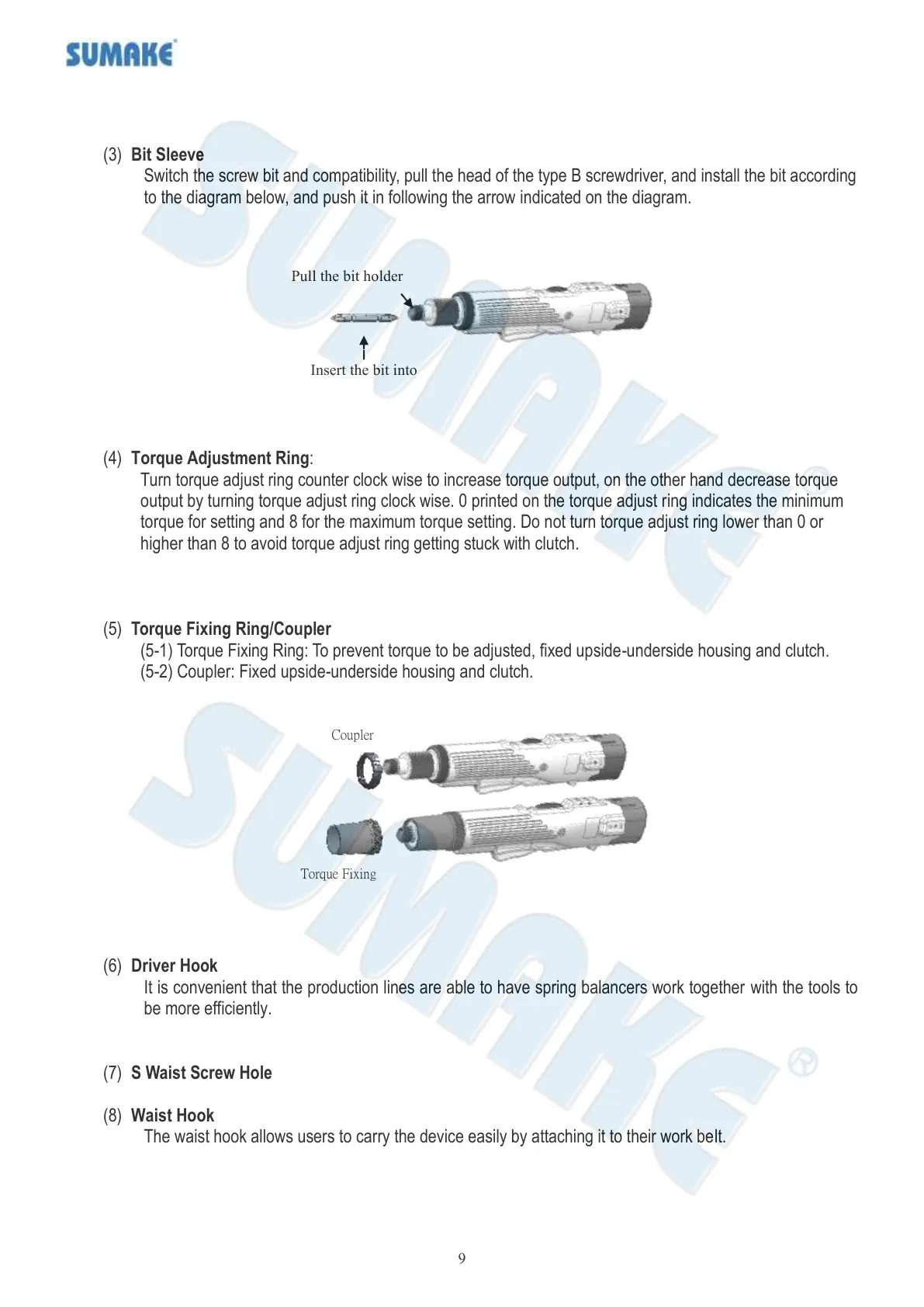 torque for setting and 8 for the maximum torque setting. Do not turn torque adjust ring lower than 0 or