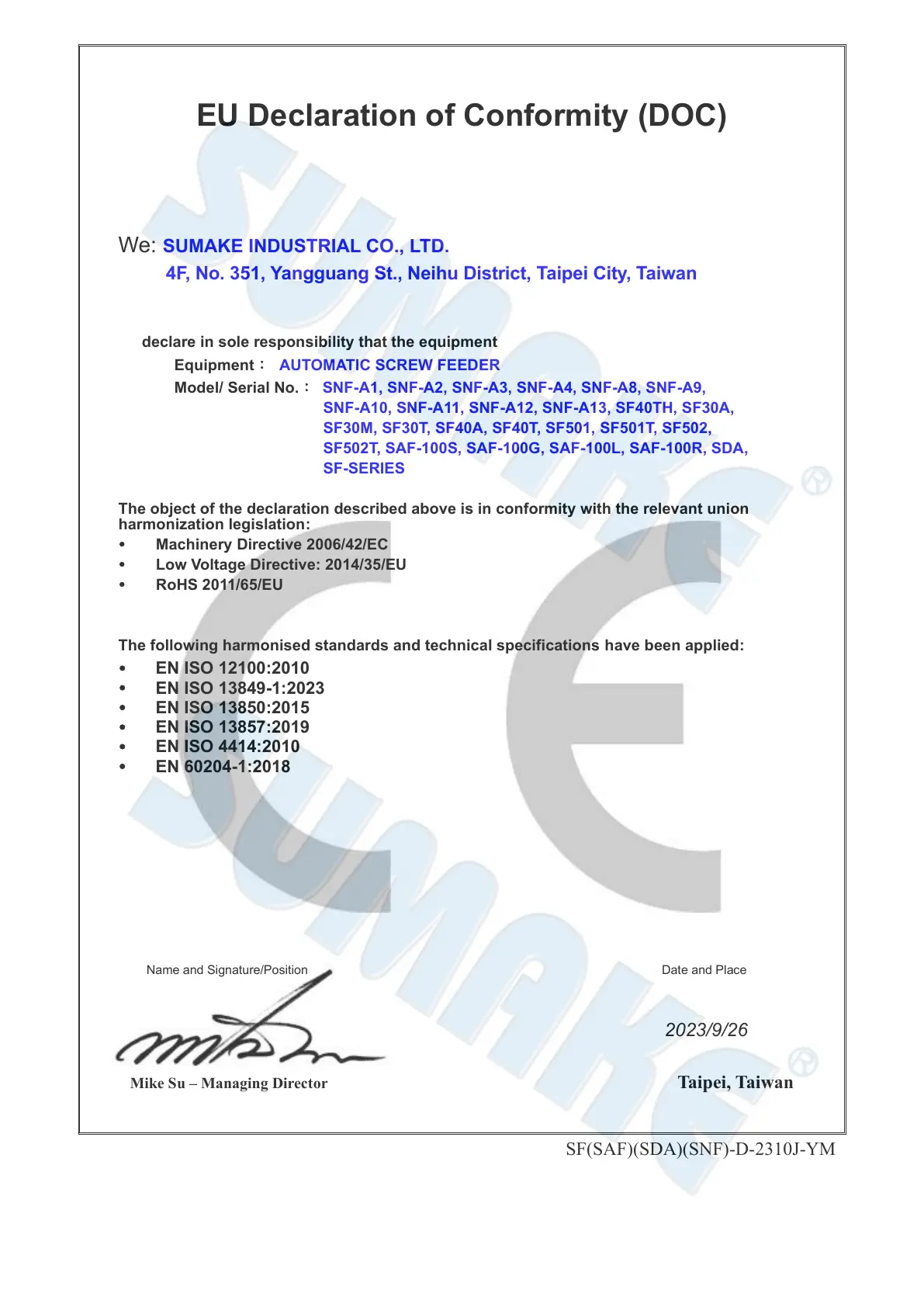 We: SUMAKE INDUSTRIAL CO., LTD.