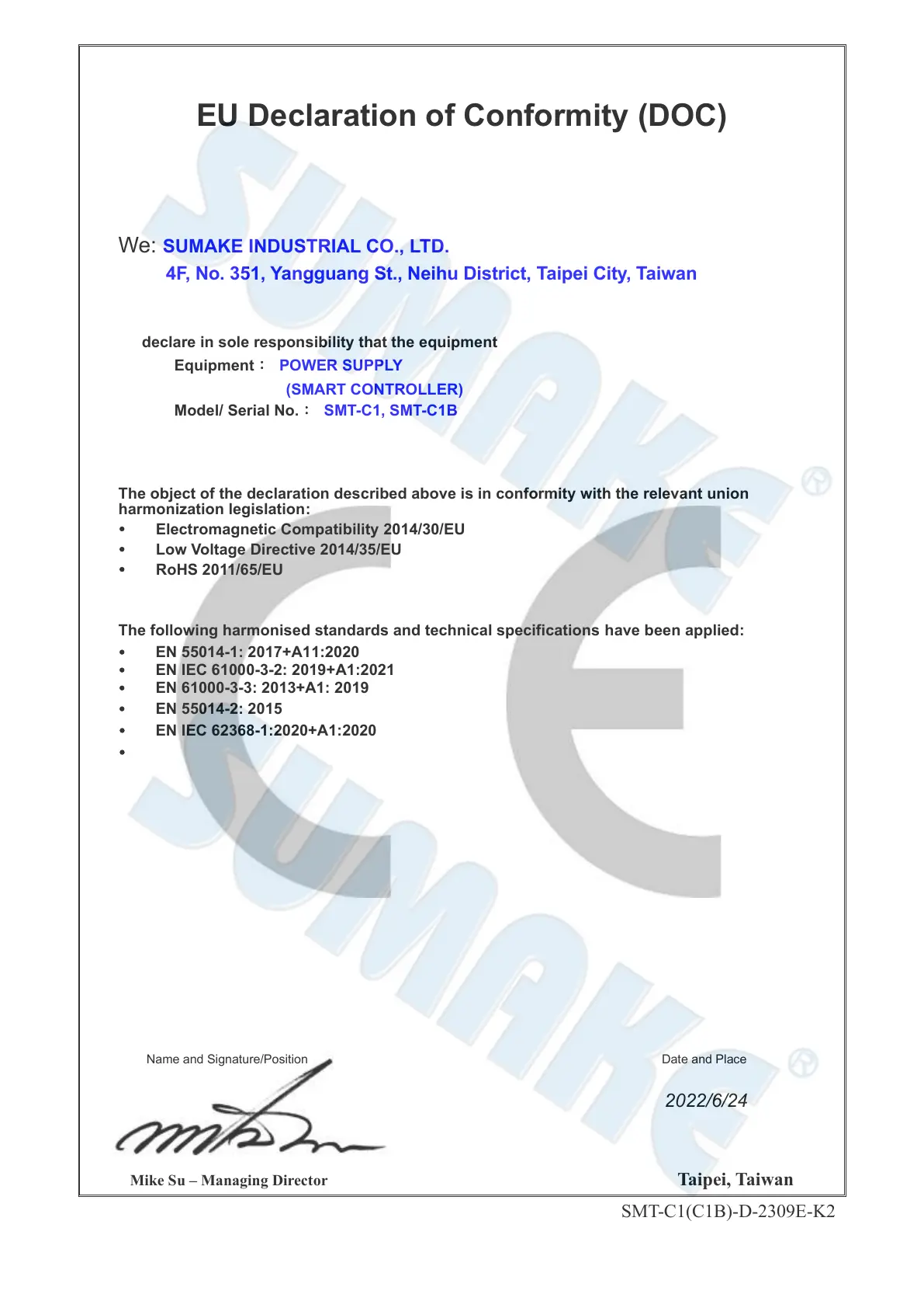 We: SUMAKE INDUSTRIAL CO., LTD.