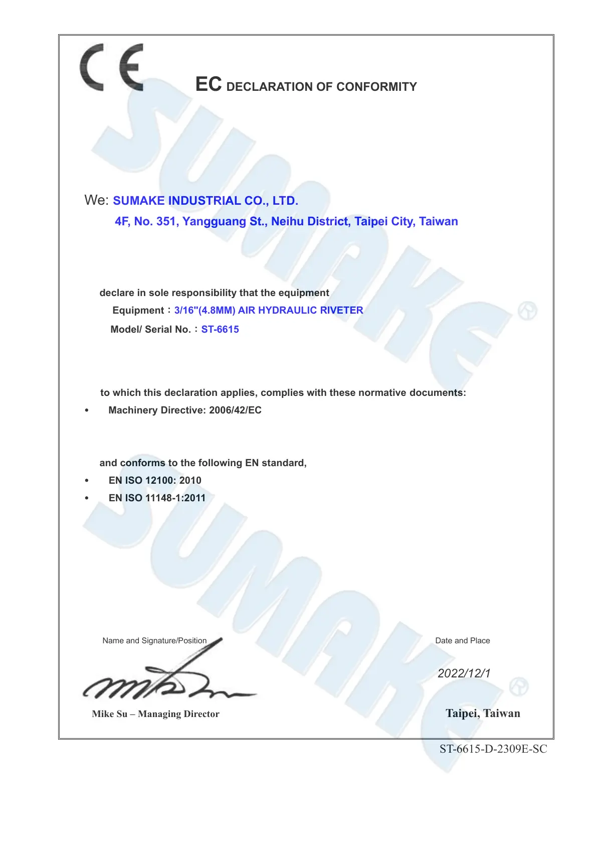 We: SUMAKE INDUSTRIAL CO., LTD.