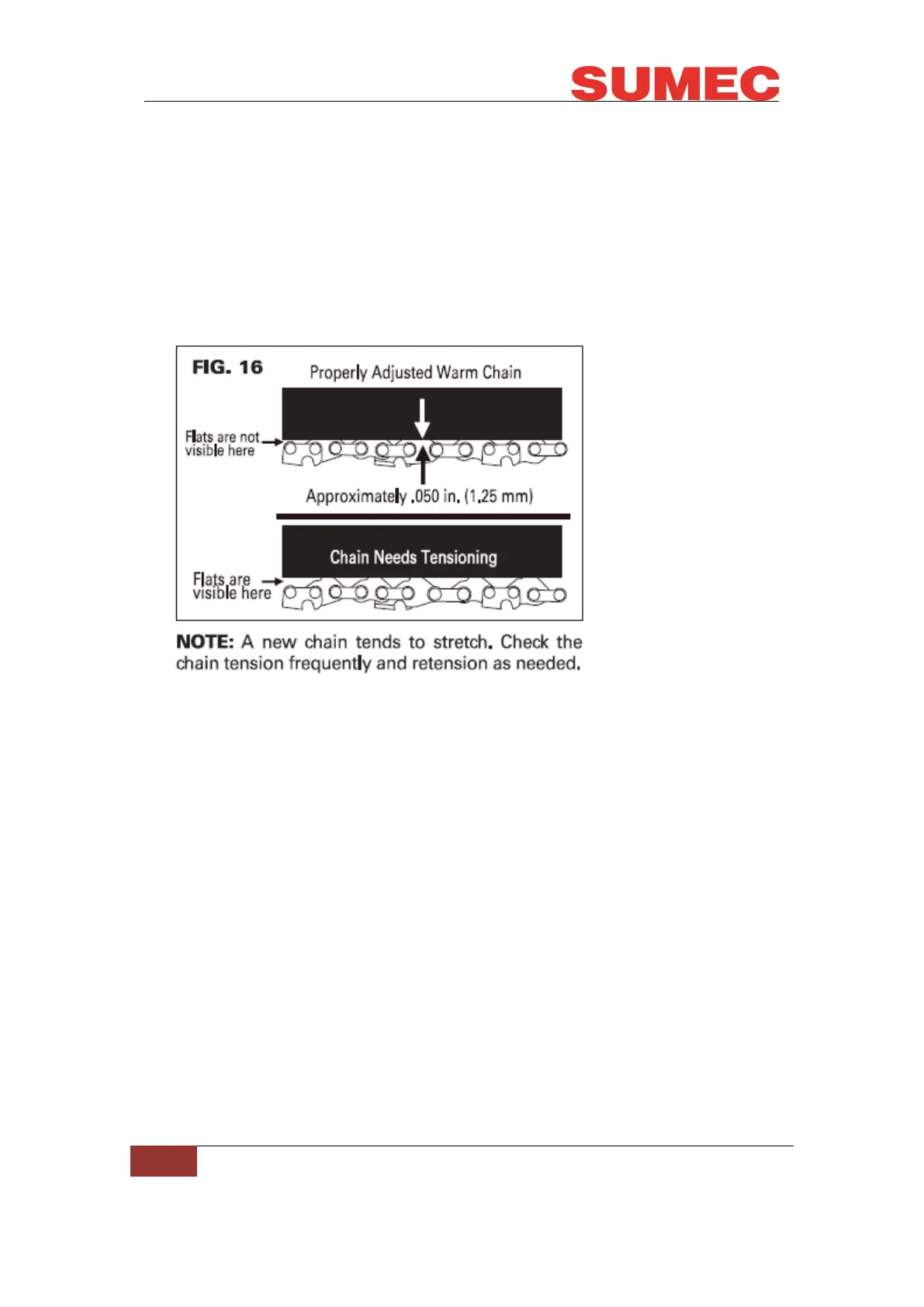 before next use. The chain must be retensioned whenever the flats on the