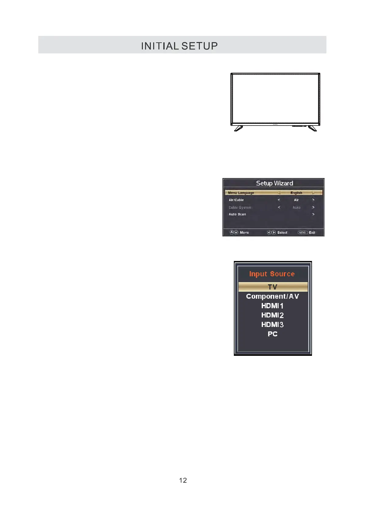 (TV Component/ AV, HDMl, PC)