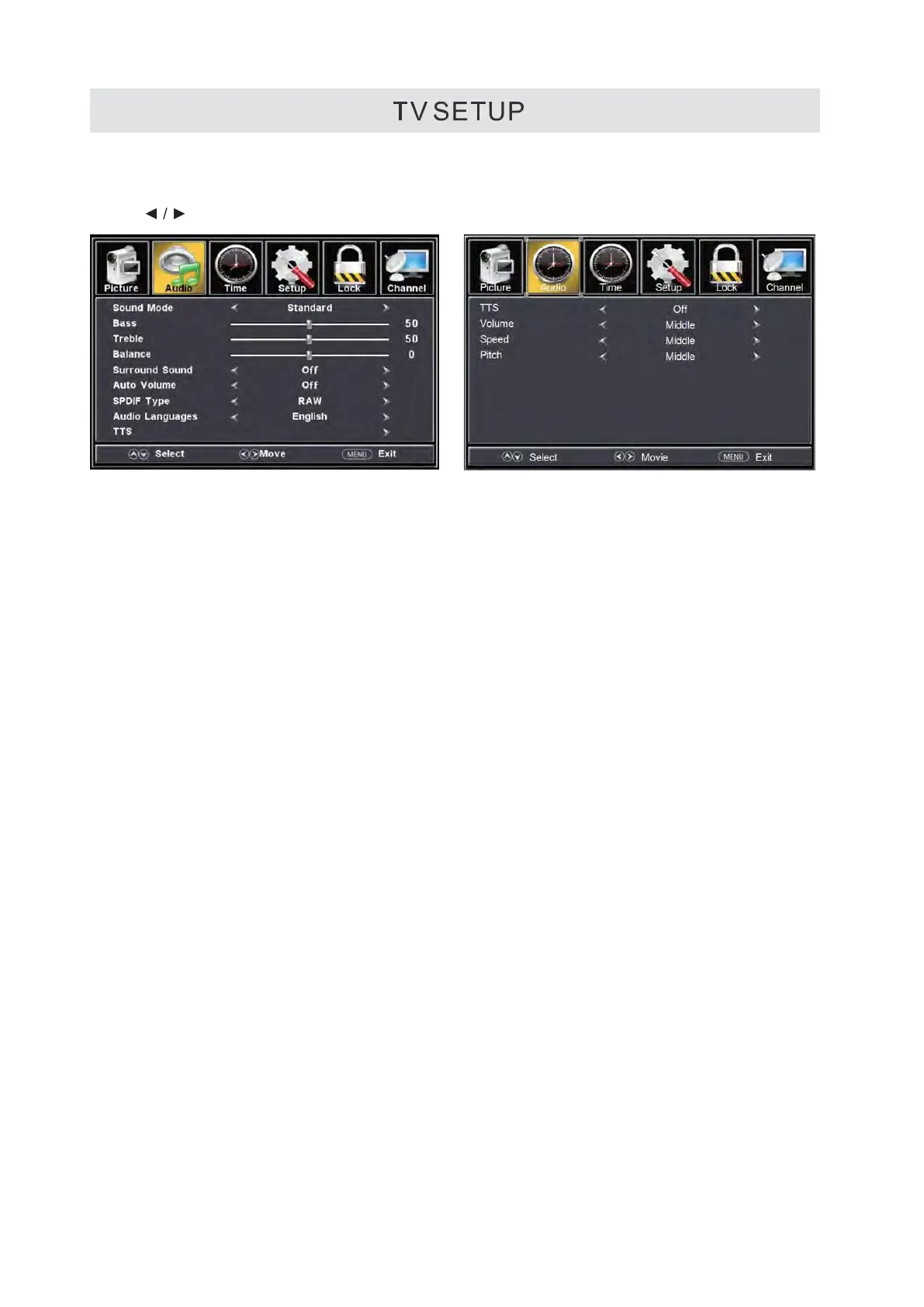 Press left or right or enter key on the remote, will enter the TTS subpage item settings. The meaning of