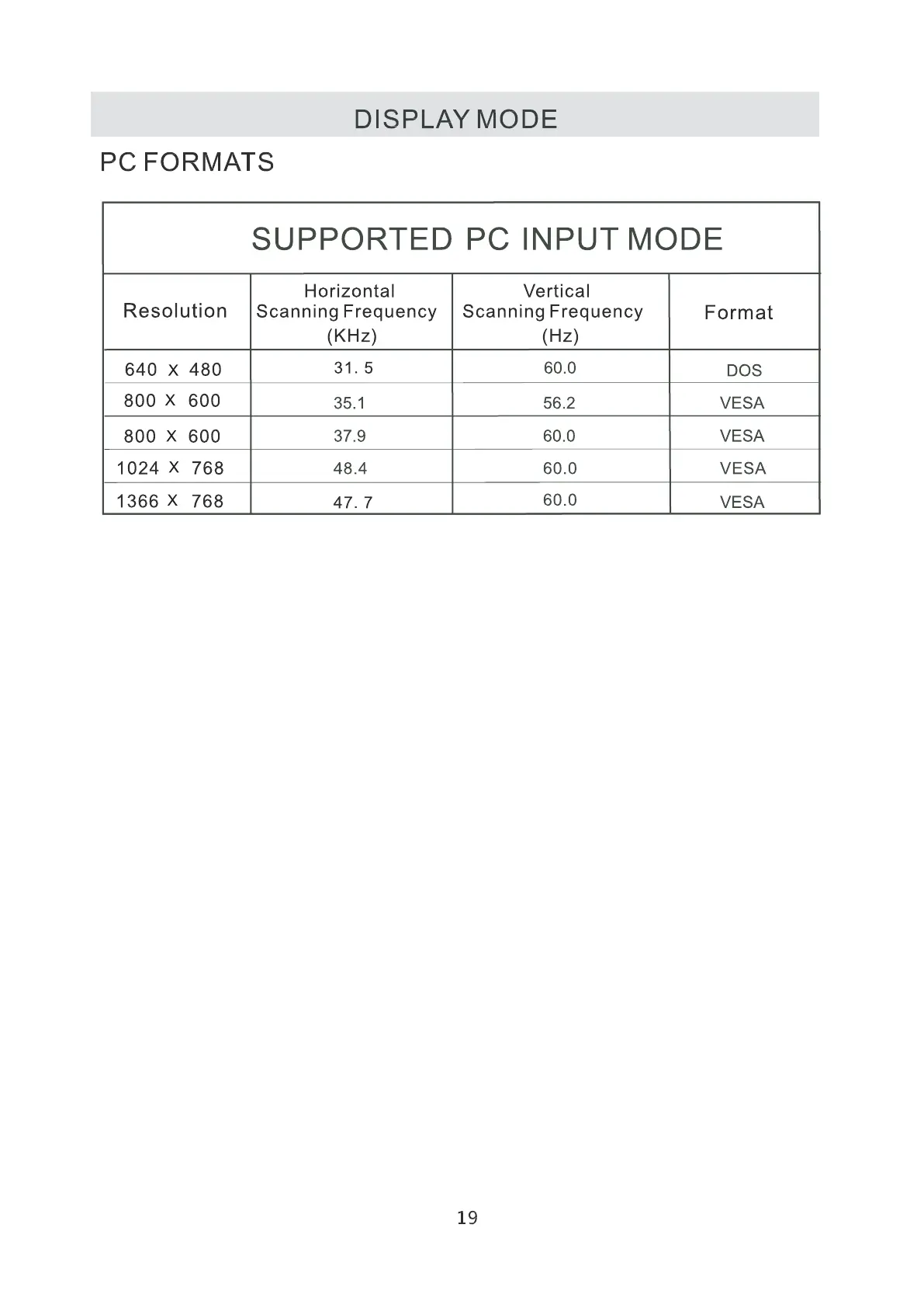 This product does not support the display mode not listed above.