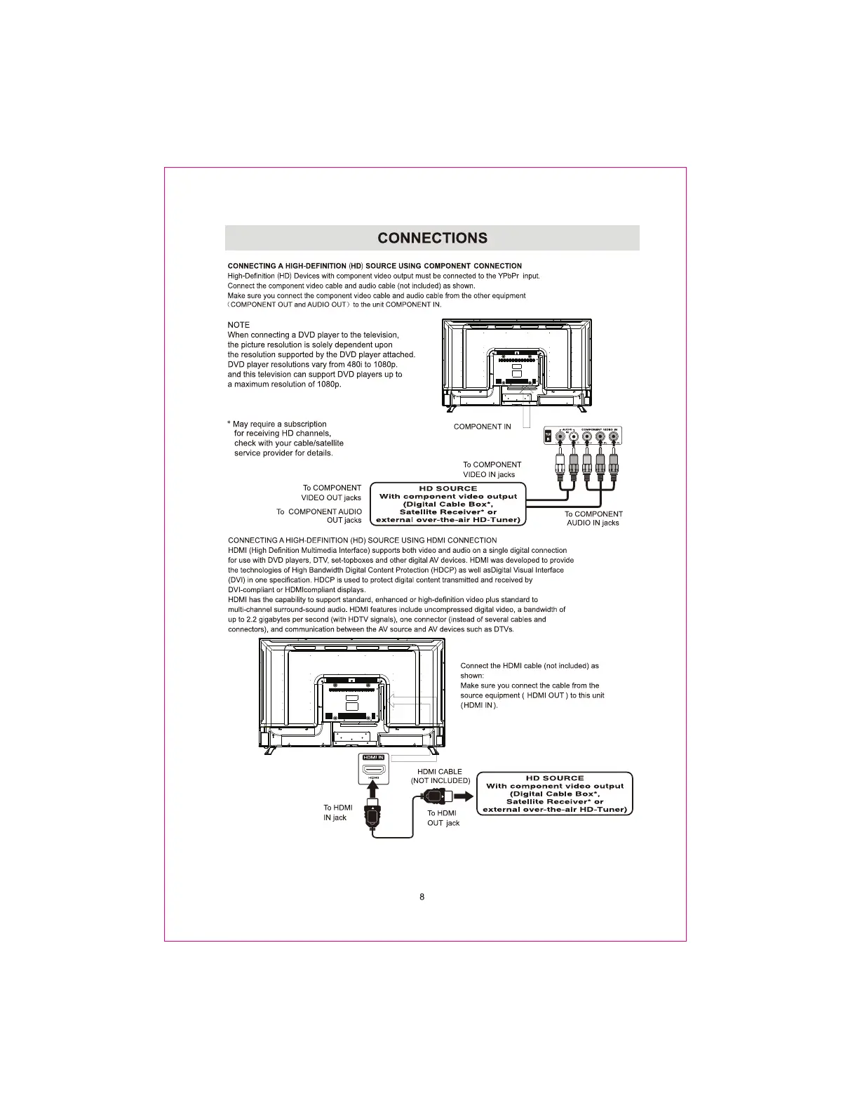 Sumec ULD50SU4KC - HD Component Connection; HD HDMI Connection