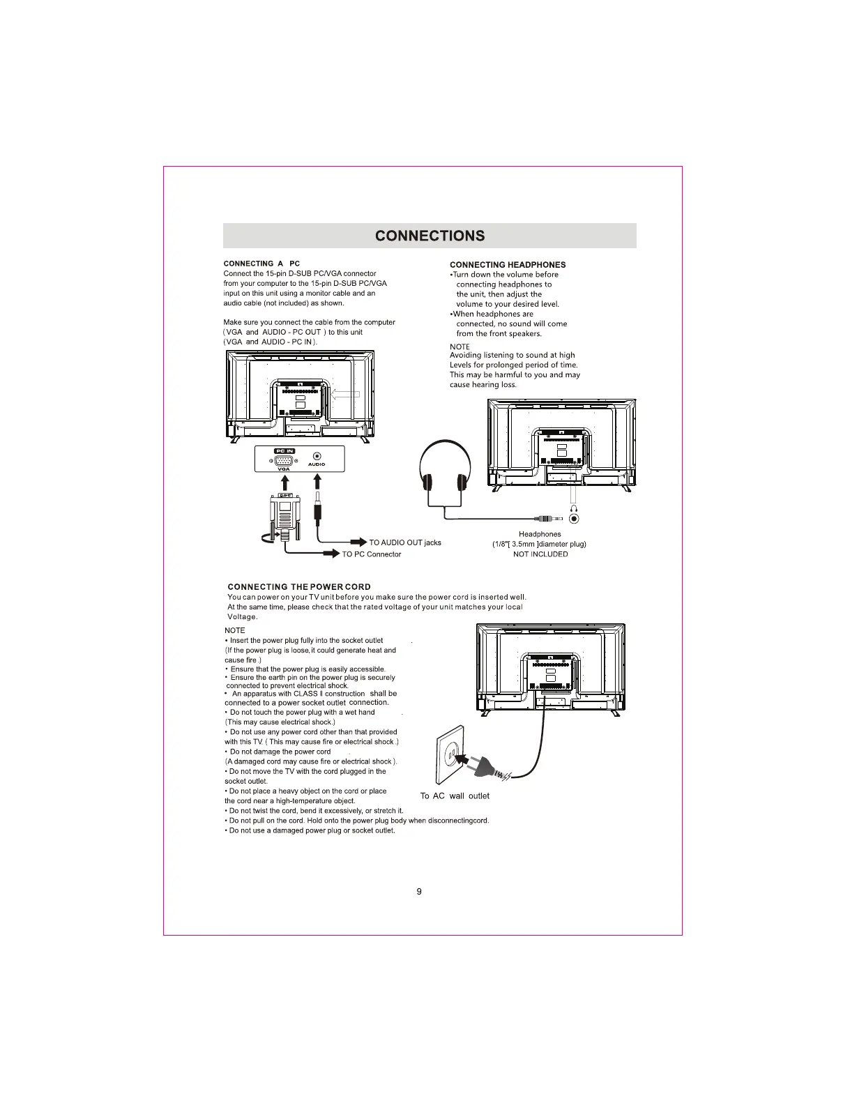 Sumec ULD50SU4KC - PC Connection; Power Cord Connection