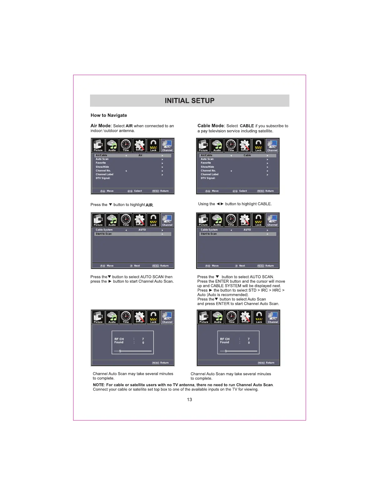 Sumec ULD50SU4KC - Air Mode Setup; Cable Mode Setup