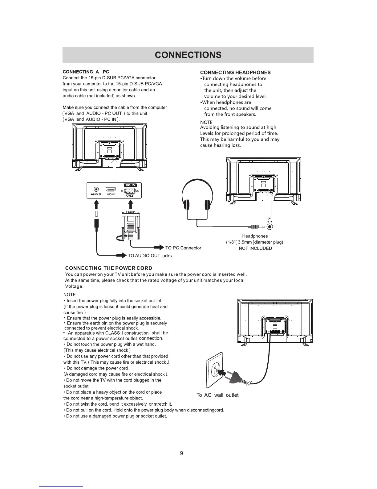 Sumec ULD65SU4KC - Connecting Headphones and Power Cord