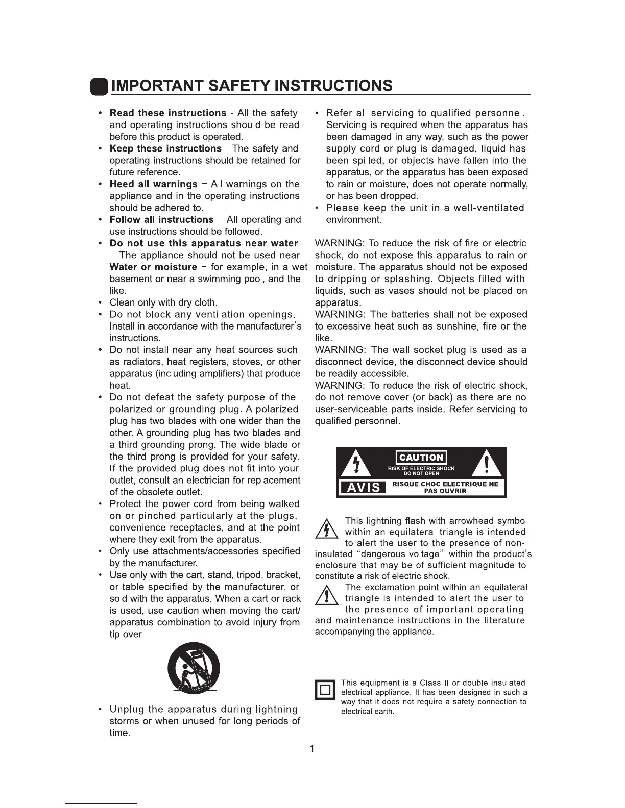 Sumec ULD65SU4KC - Important Safety Instructions; Electrical Safety and Cord Management; Operational Warnings and Servicing