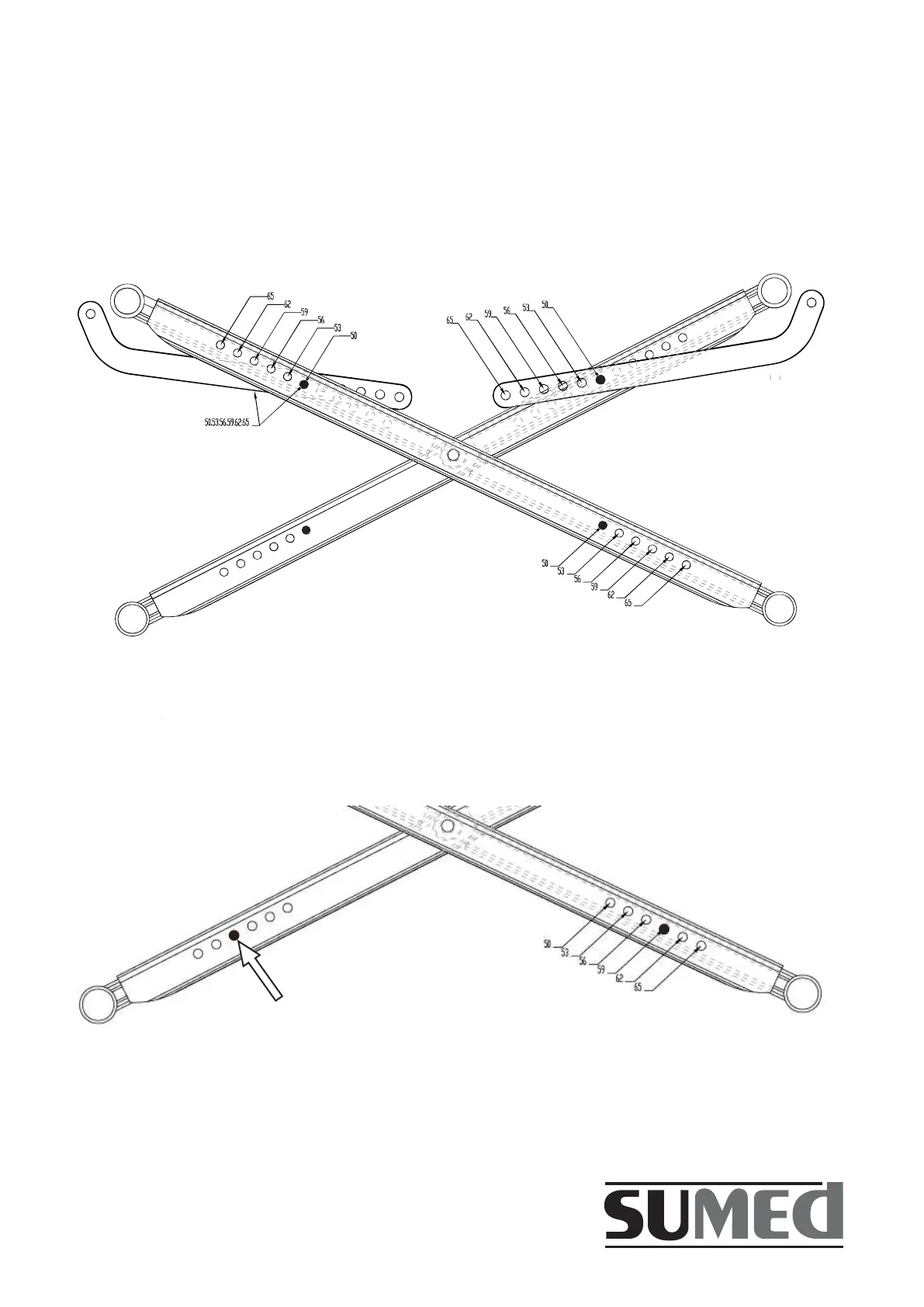 4.2.2. The crossbar is telescopic to achieve following seat widths: 50 / 53 / 56 / 59 / 62 / 65cm.
