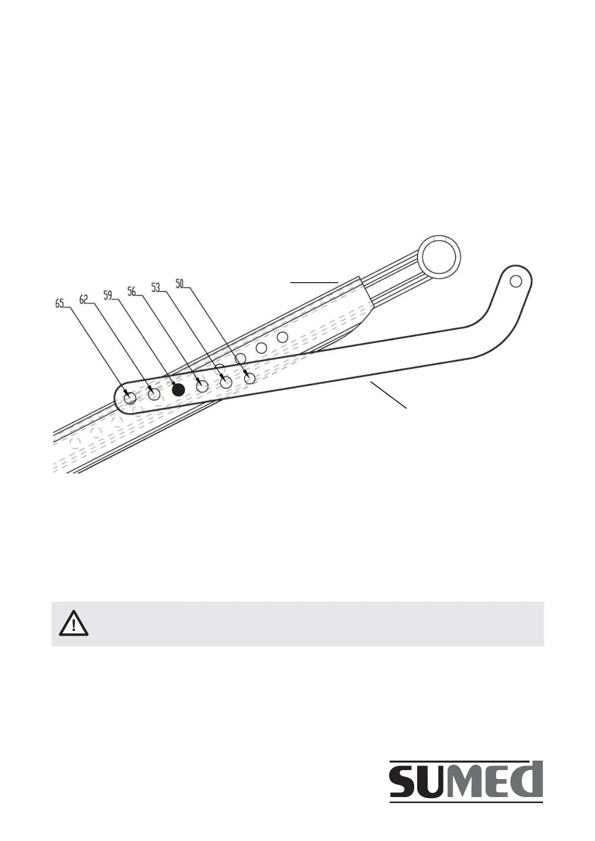 Note: For all seat widths from 50cm to 65cm always use the lowest hole in the crossbar and the