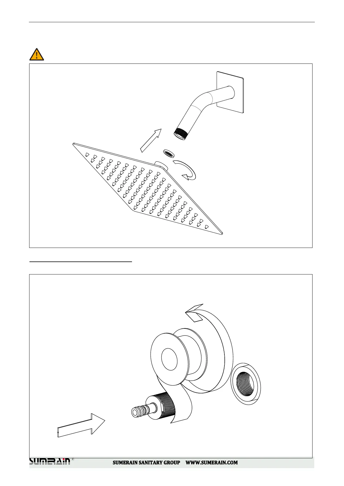 7.3 Put the screen washer into the connector of showerhead and secure the showerhead on the shower head arm by hand rotating