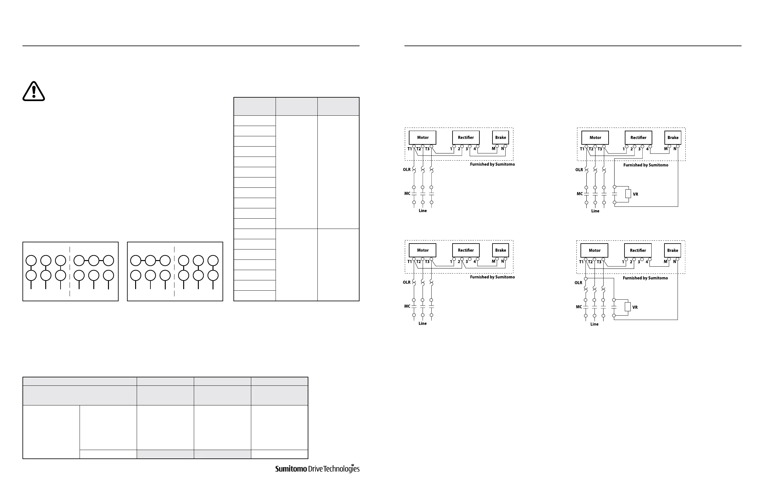For wiring of Fast Brake Action, Sumitomo recommends the use of a Varistor (VR). Refer to Table 6-4 to assist in the