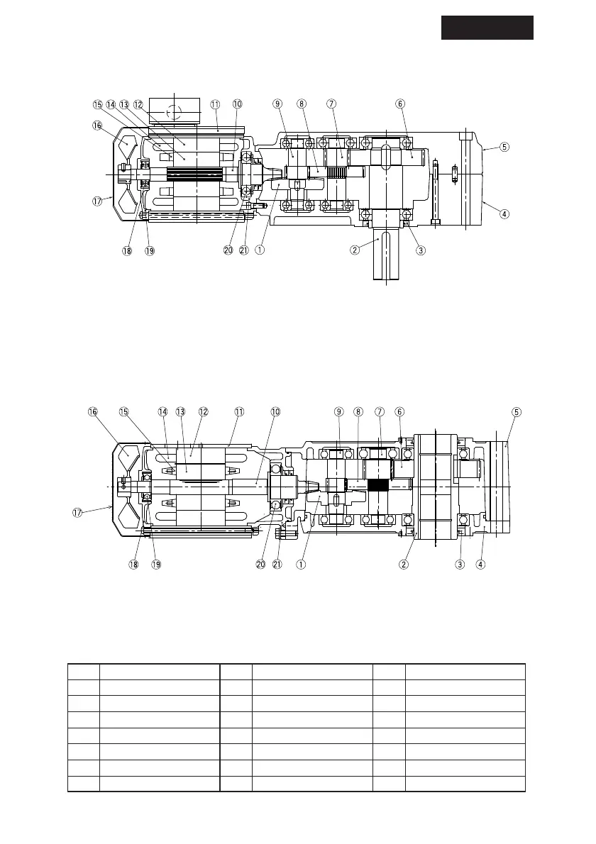 7 Pinion shaft 14 Stator windings 21 Cyclo flange bracket
