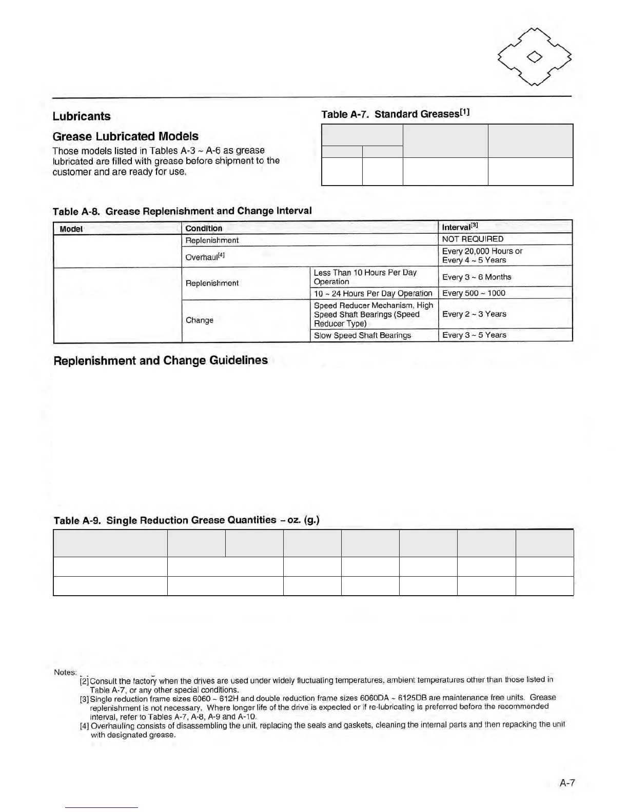 [1] Avoid the use of grease other than shown in Table A-7. For Food-Grade Lubricants, see Appendix D-3.