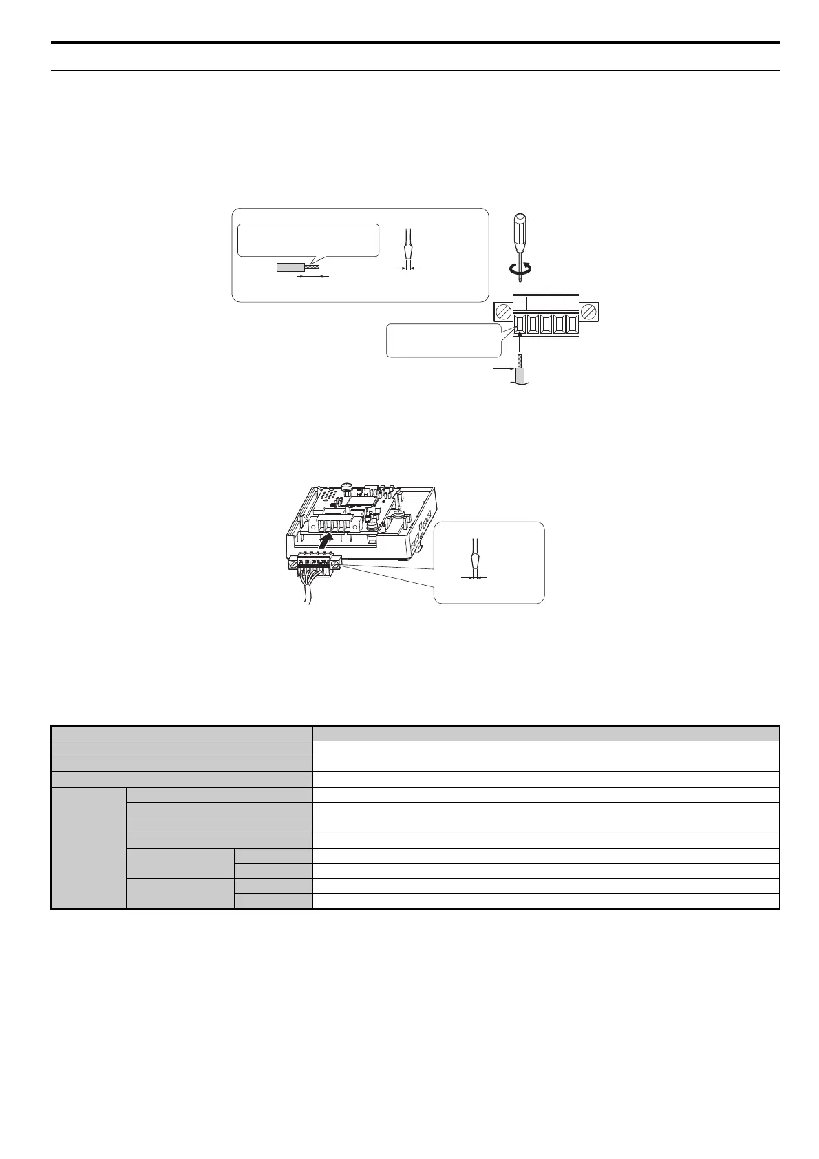 Note: Communication lines should be separated from main circuit wiring and other electrical lines. (Tightening torque: 0.22 to 0.25 (Nm))