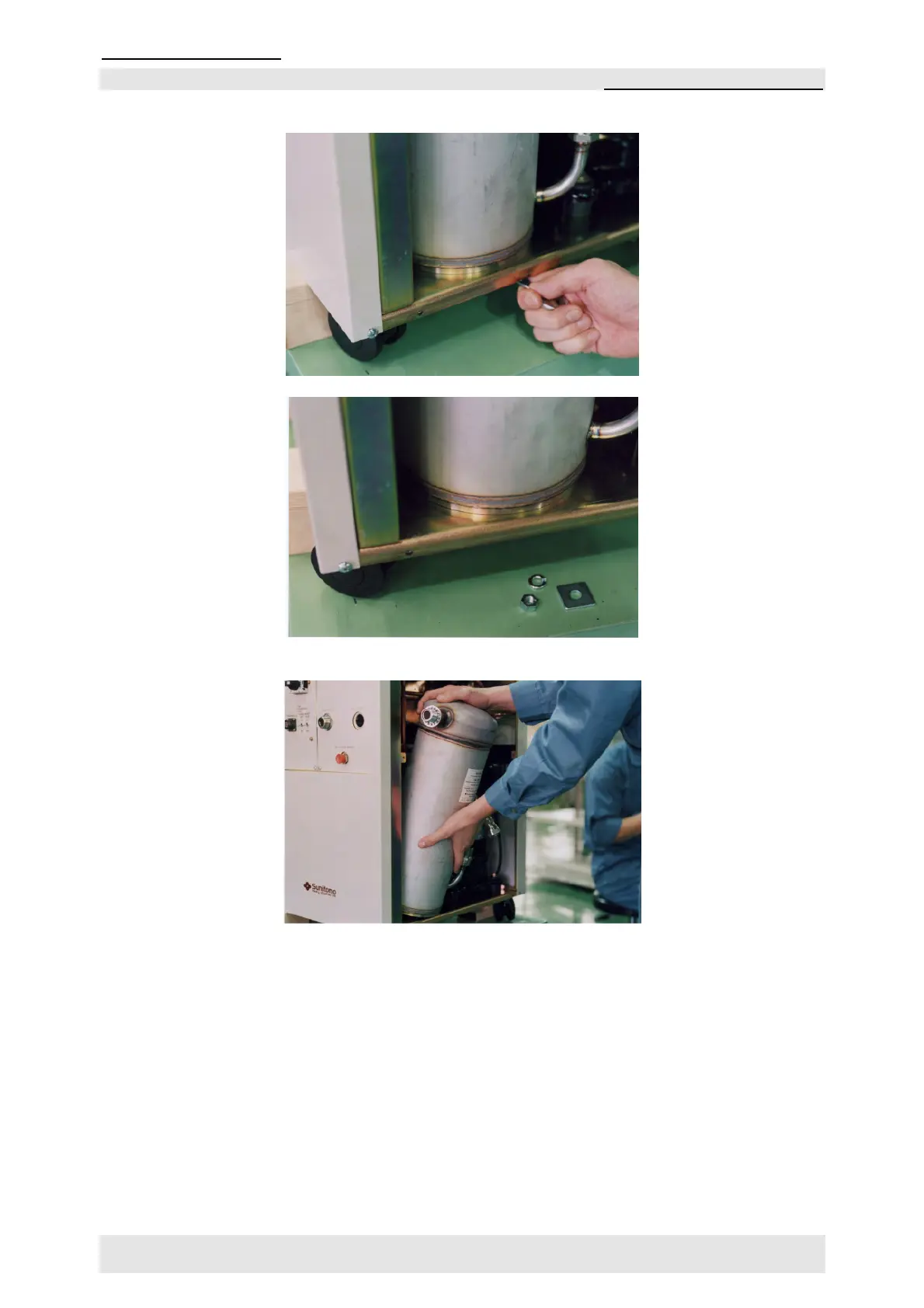 4 Remove the Nut and Washer secured the Adsorber to the base panel of the Compressor Unit.