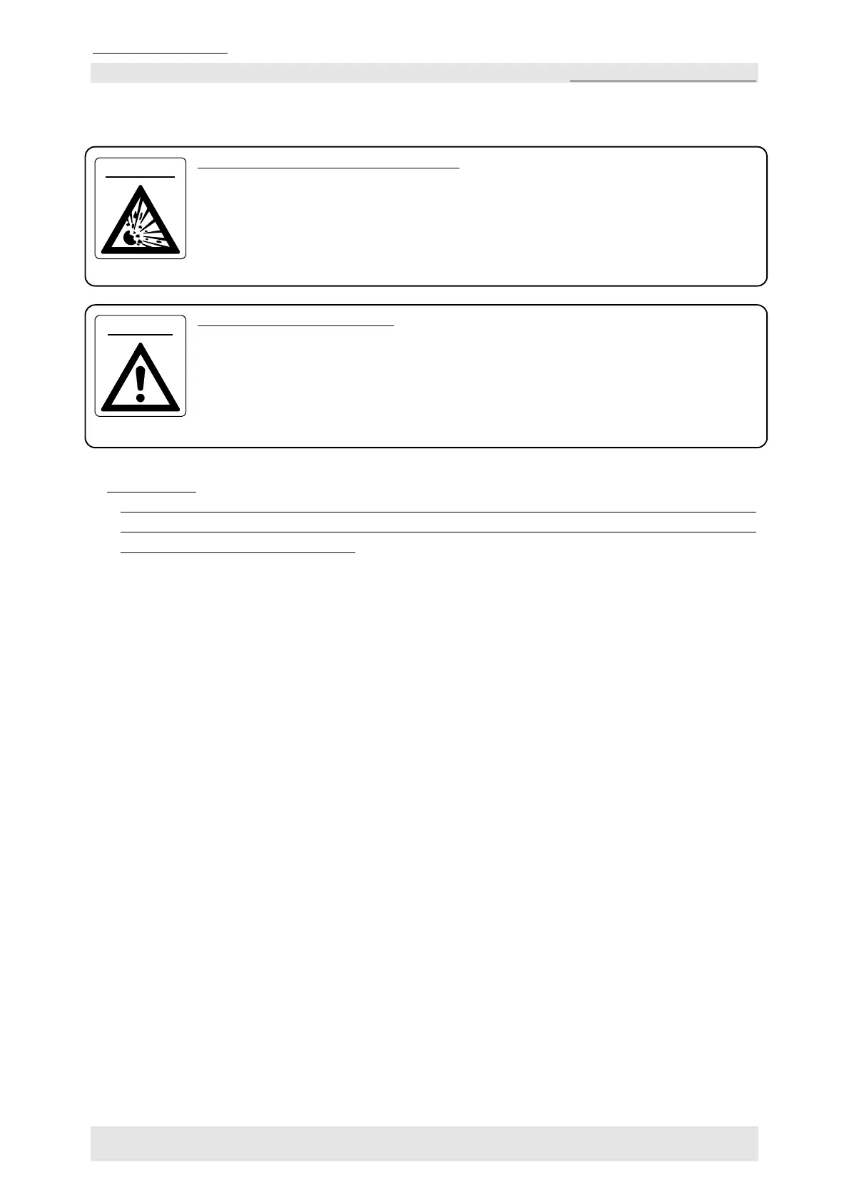 <Warning about explosion, escape of gas>