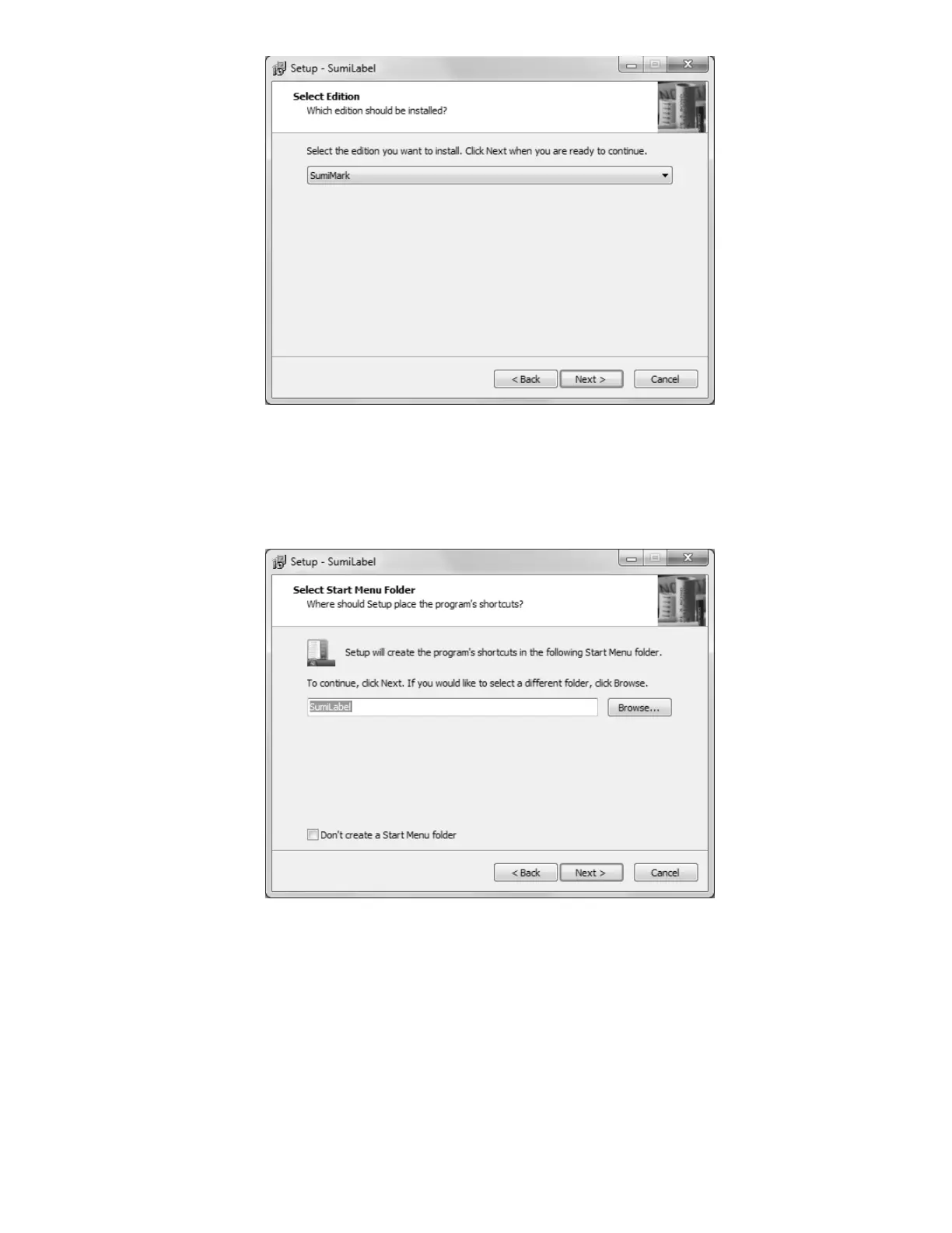 If you wish to customize the Start Menu folder that will be generated when SumiLabel is