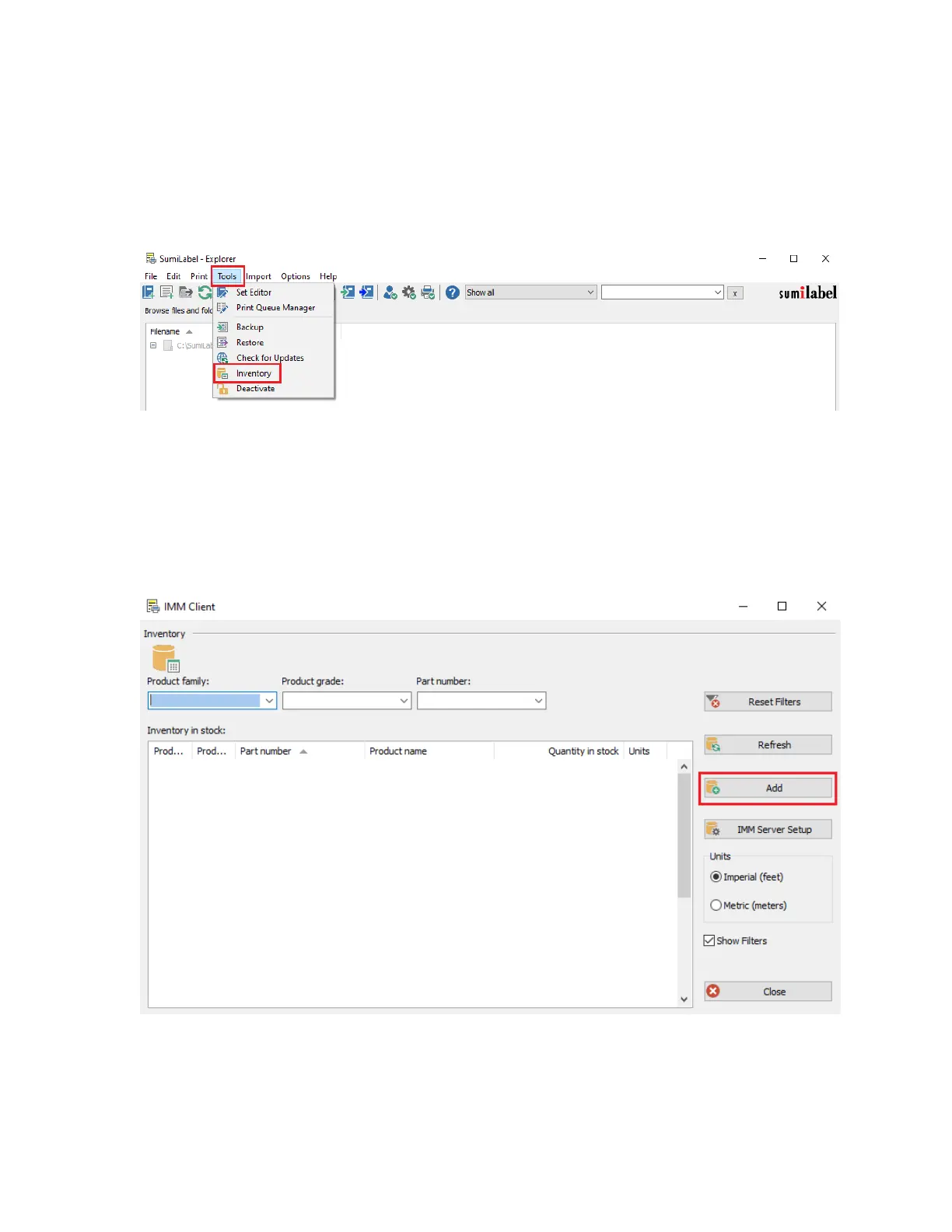 On the Sumilabel Explorer screen, click