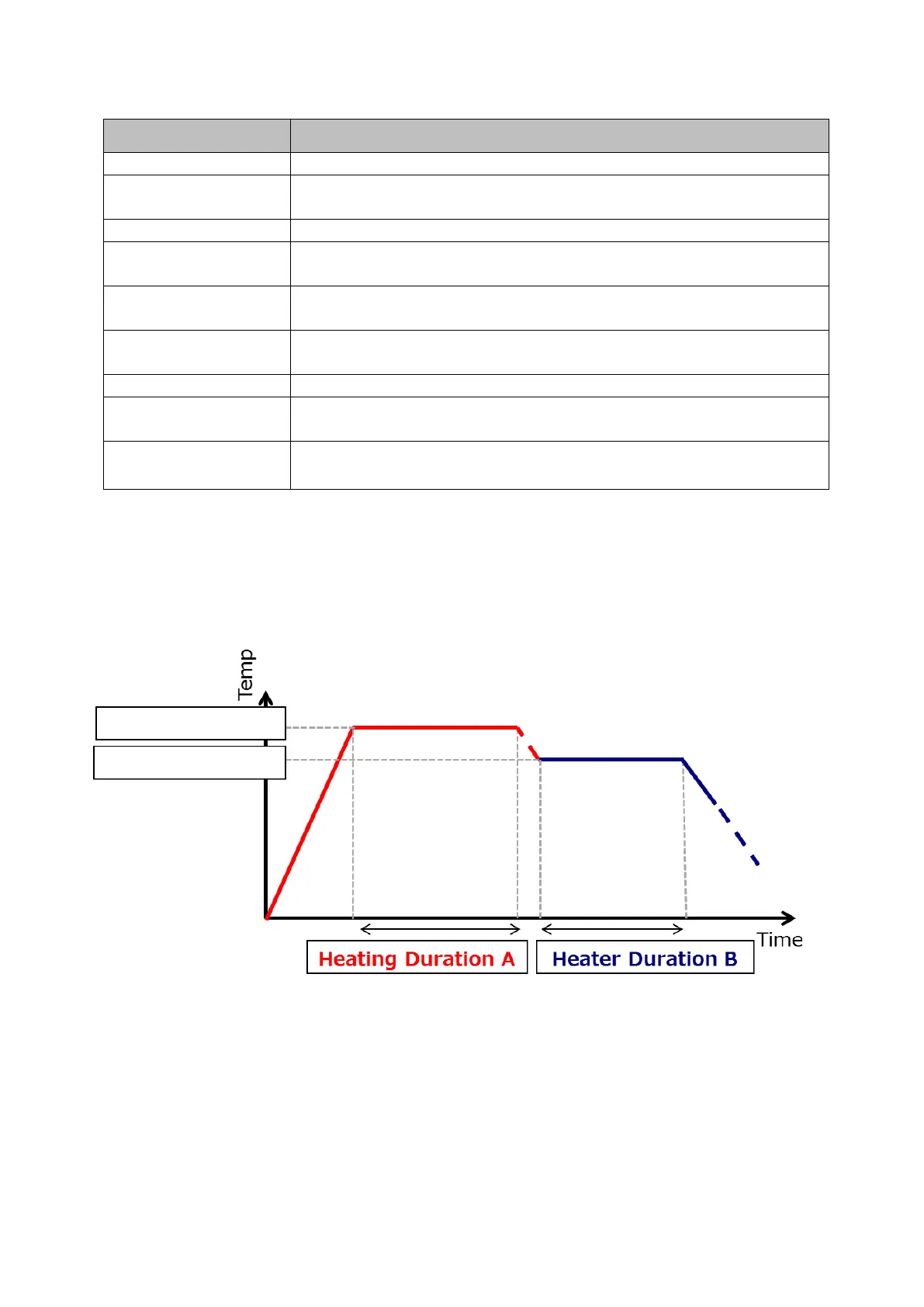 Heat up Temp. B Heating element rises up to the set temperature in the middle term of