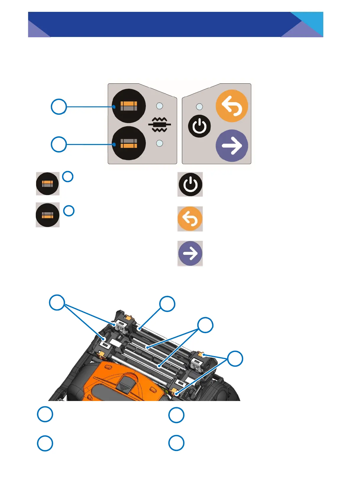 Turns on and off the splicer. LED