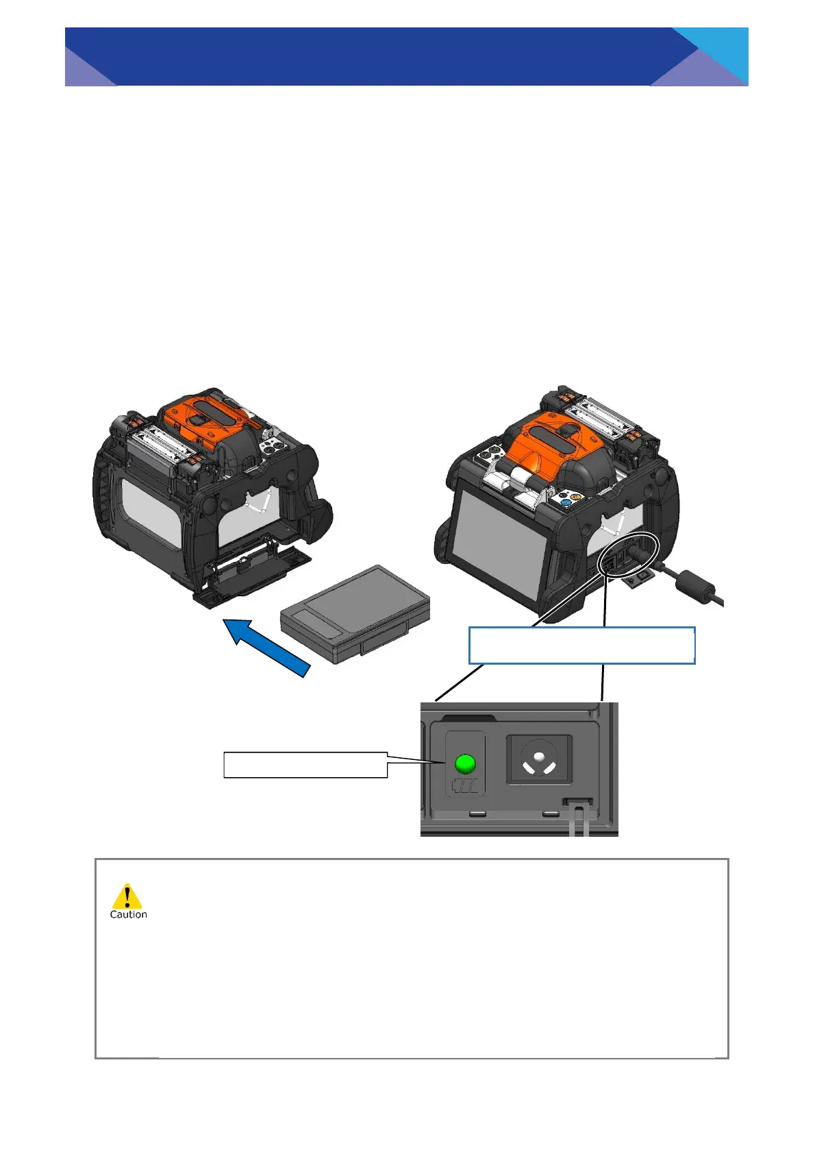 •The battery pack can be charged while the splicer is in use. However,