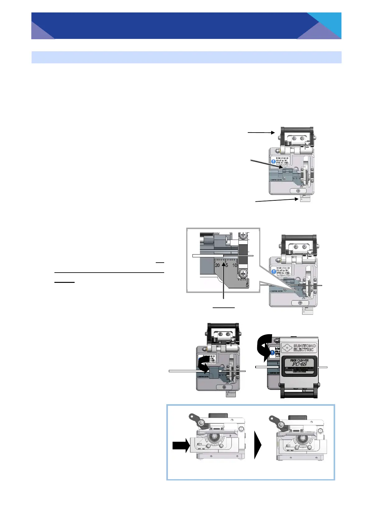 Cleave the fiber. (An example shows use of Sumitomo FC-6S fiber cleaver, the cleave