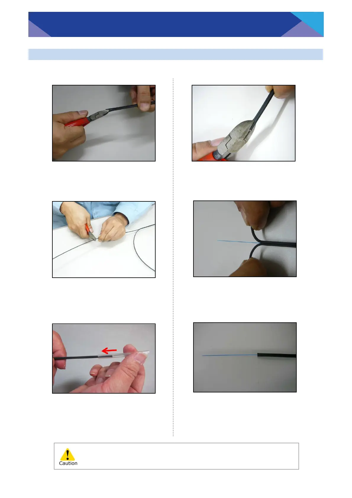 Take care not to damage the optical fiber when cutting the cable