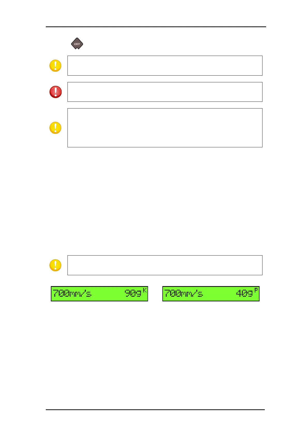 Press twice to leave the knife pressure menu.