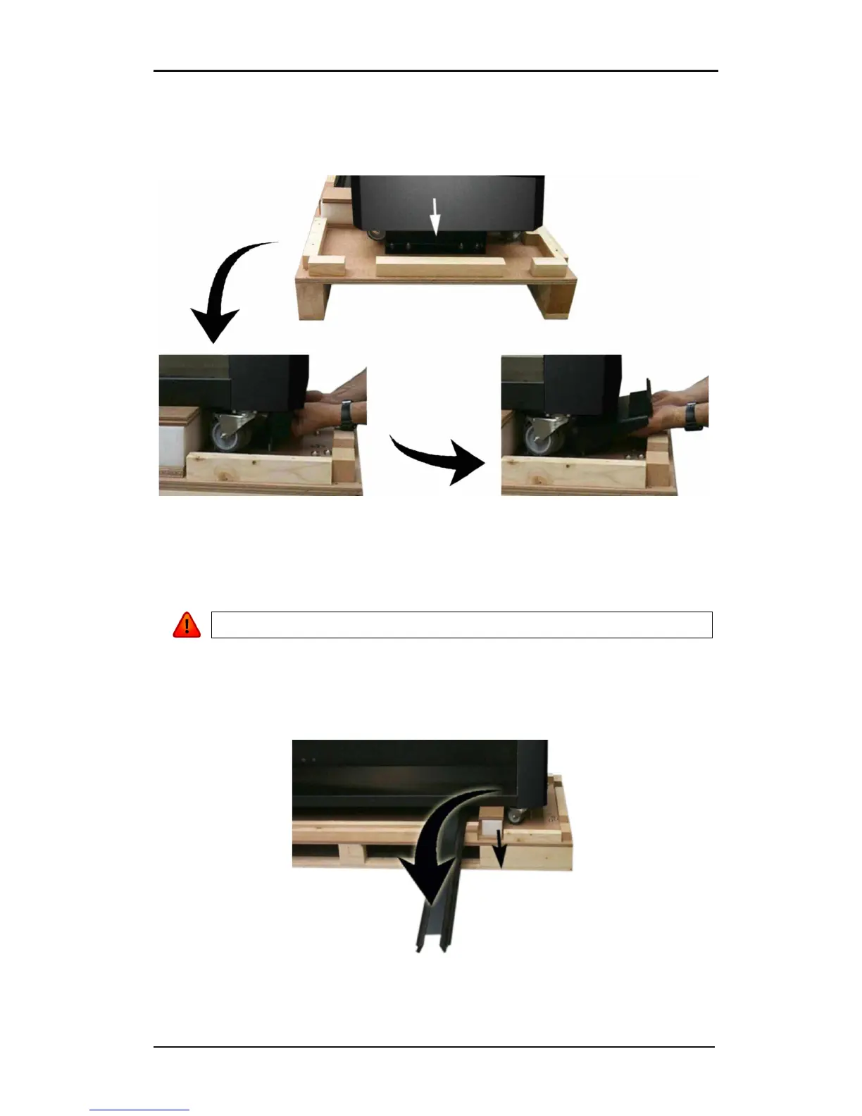which are screwed to the pallet. Slide the ramp under the stand, closest to the end with the