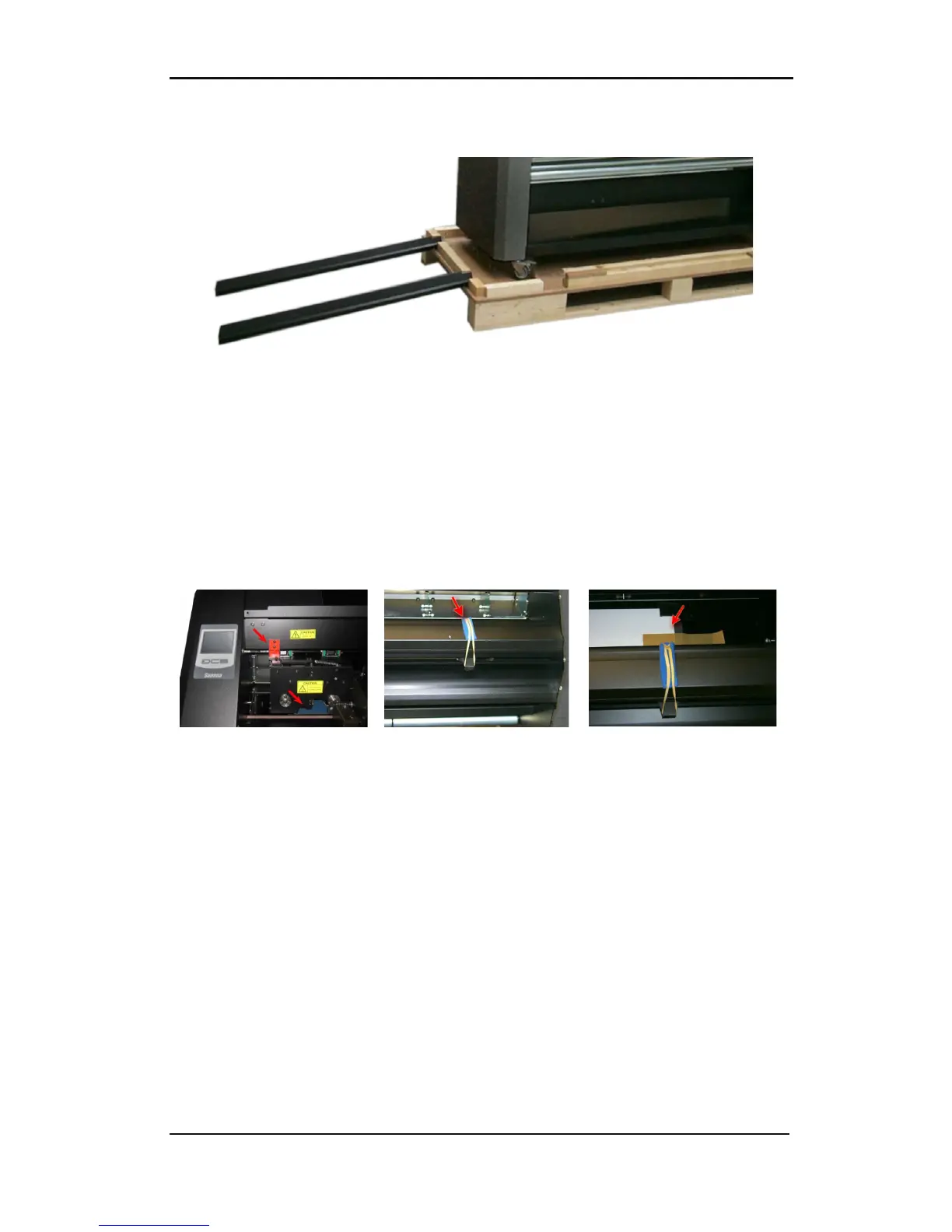 Position the ramps in this way the printer can be rolled down from the pallet. Be sure the