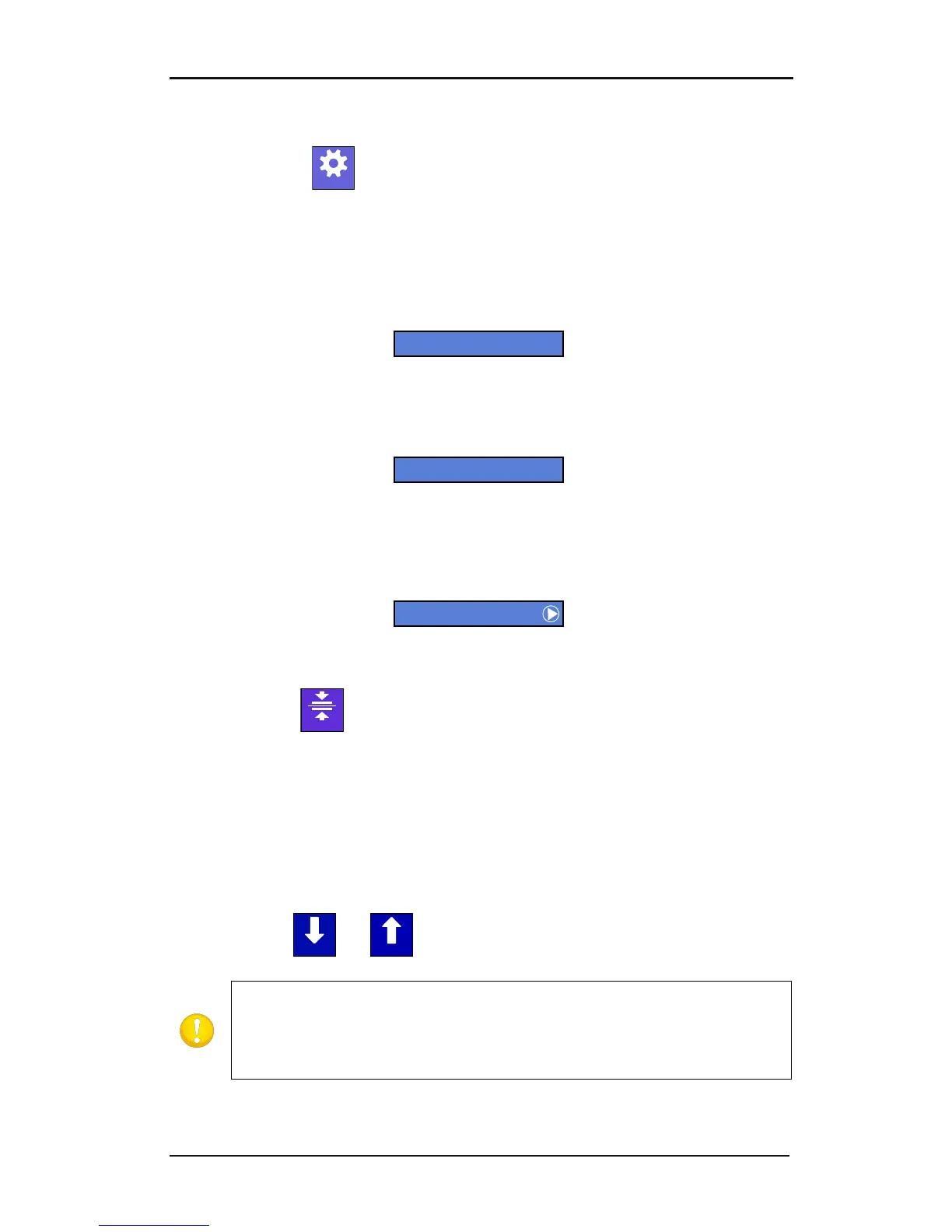 The Settings button gives access to the main menu. Pressing this button will cause