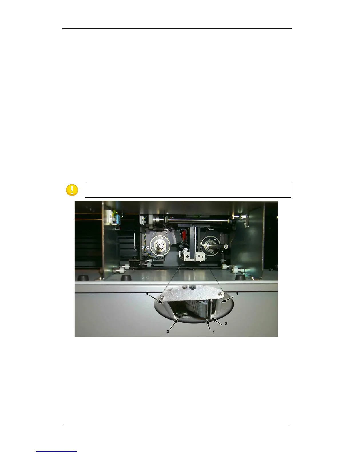 3. Gently wipe the printhead (1), the release plate (2) and the rollers (4).