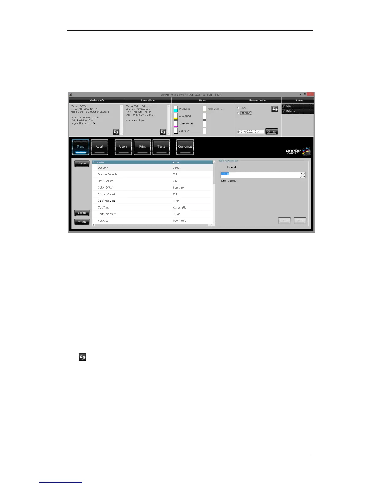 The Summa Printer Control program basically has the same functions as the control panel. It