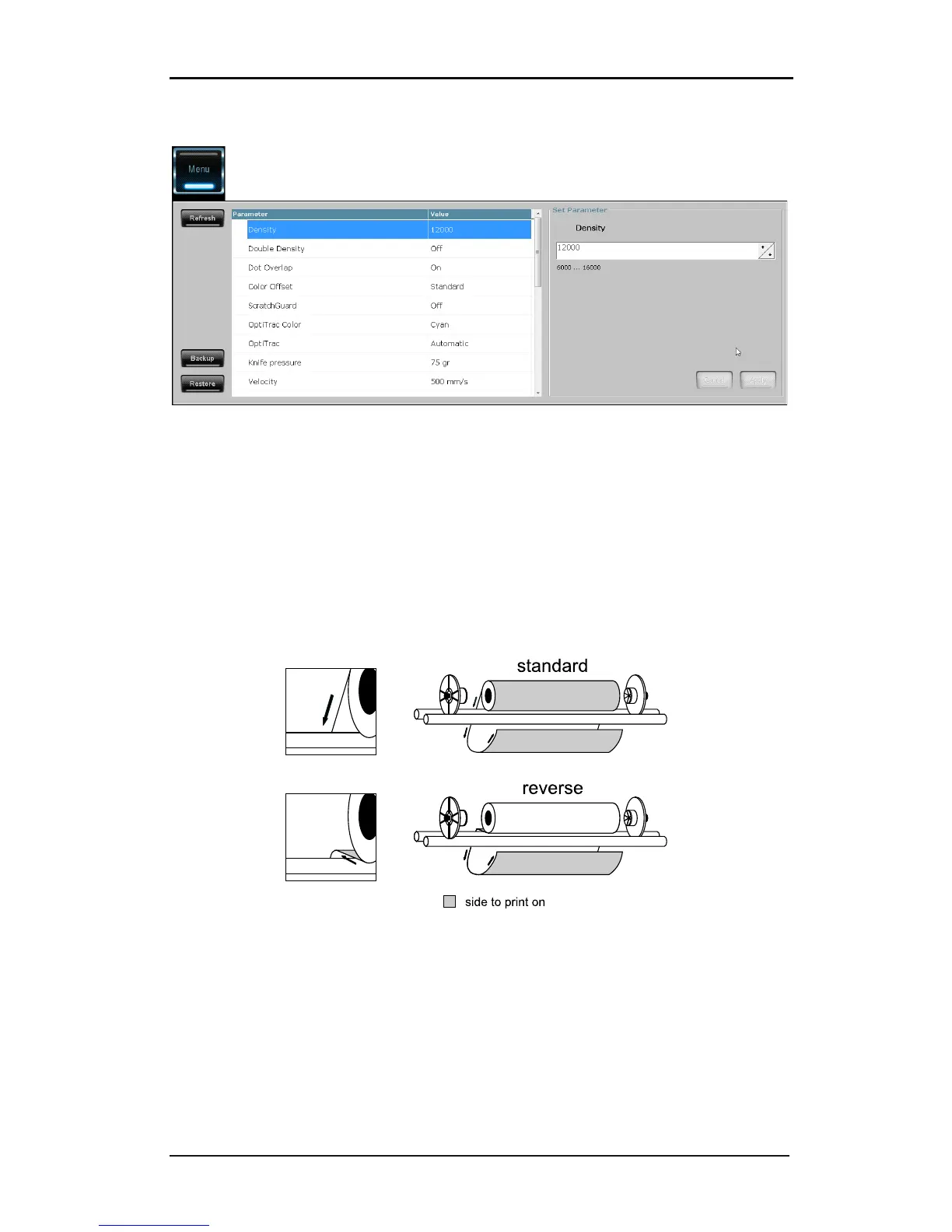 First there is the parameter supply direction. Normally the print side of the media is on the