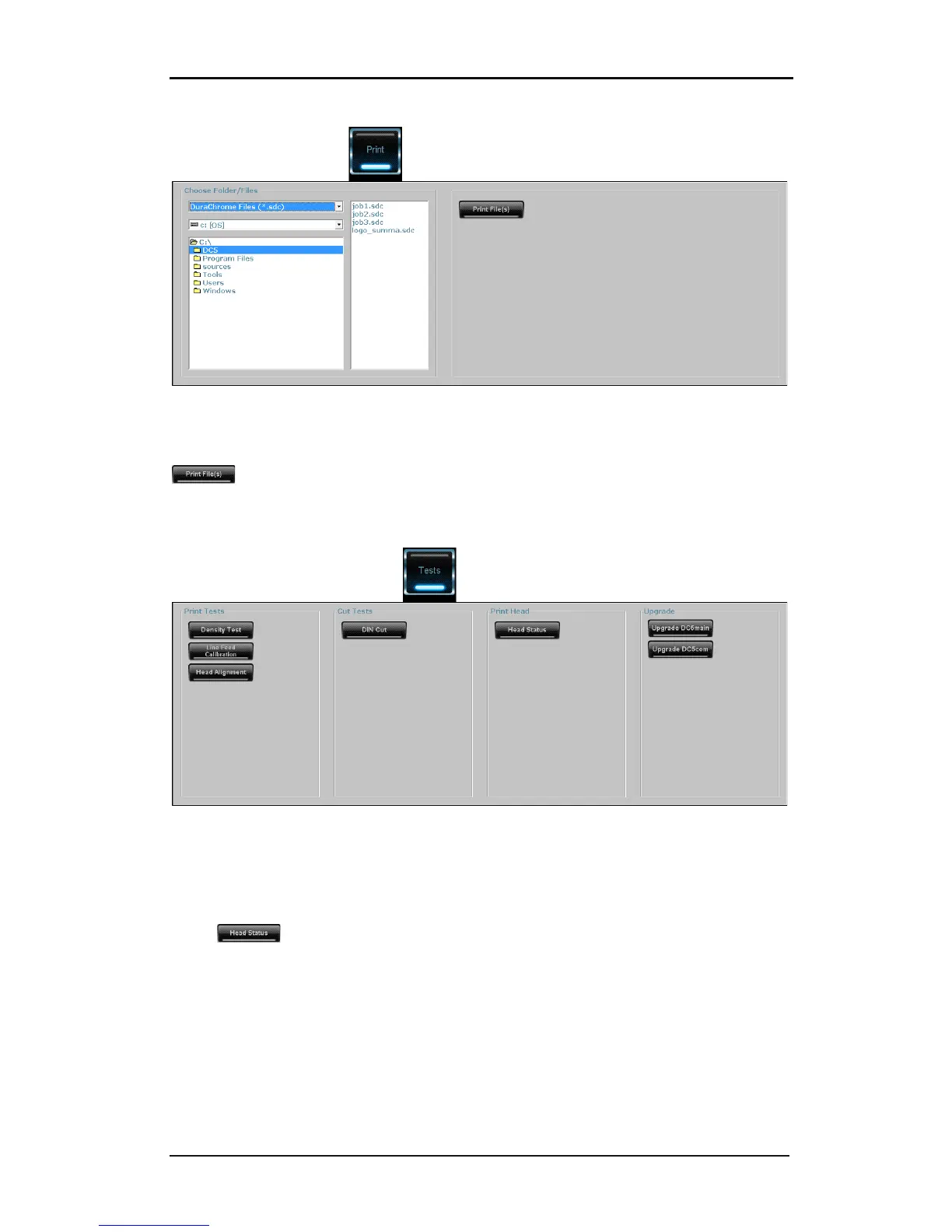 The print and cut tests are the same tests that are available on a DC with an internal hard