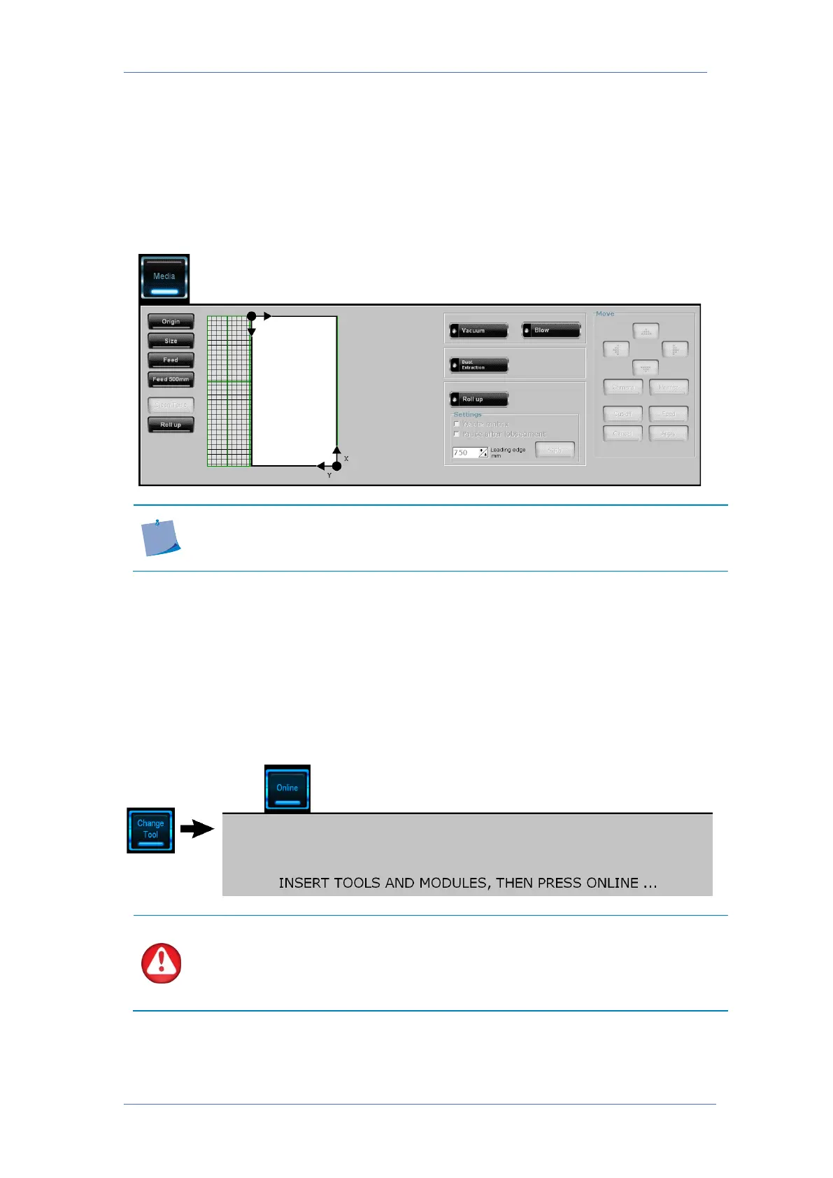 After a module or tool change, click the Online button. The machine will then detect any module