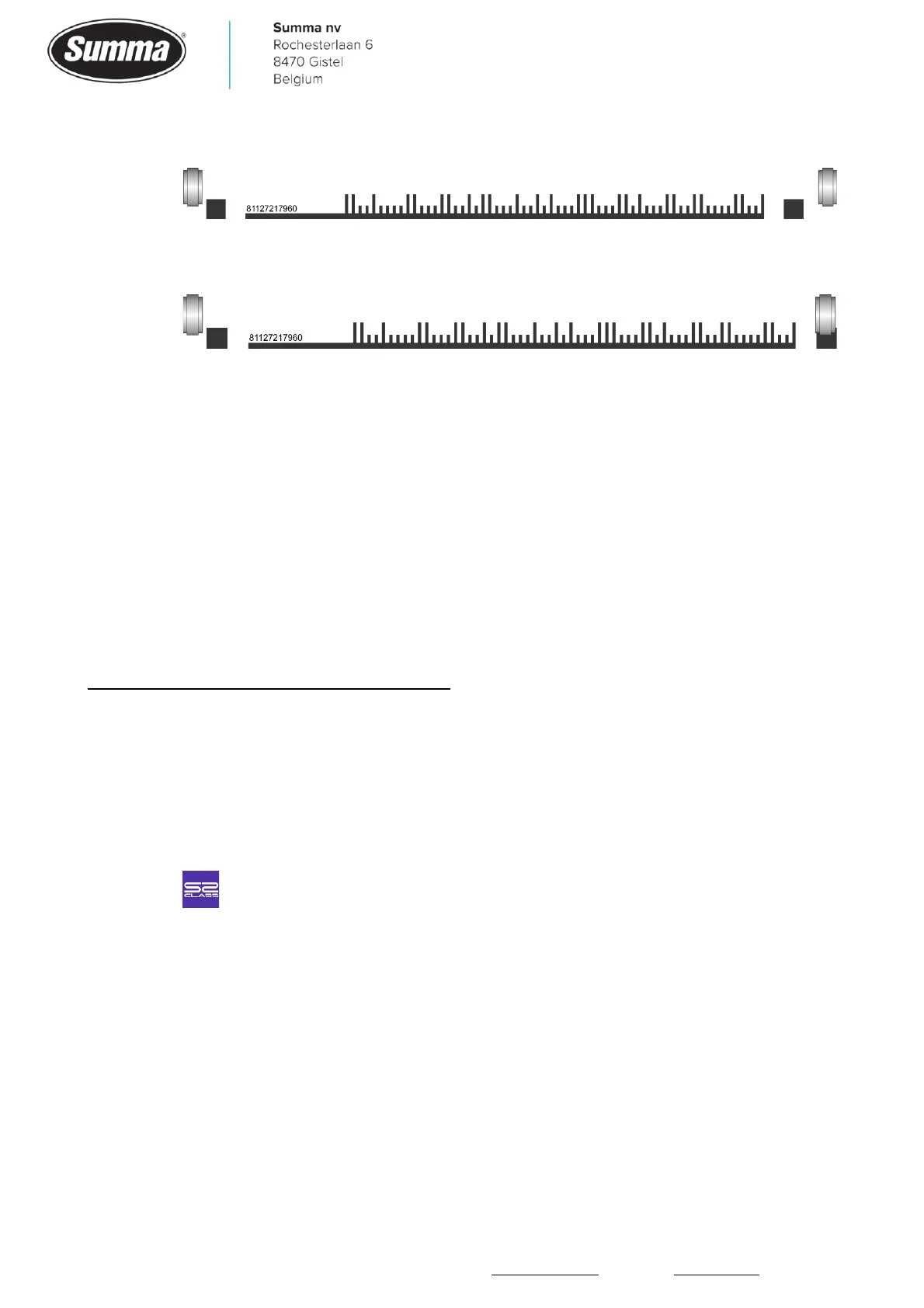 Summa nv Tel +32 59 27 00 11 Fax +32 59 27 00 63 Email support@summa.com Website www.summa.com Page 17 of 76