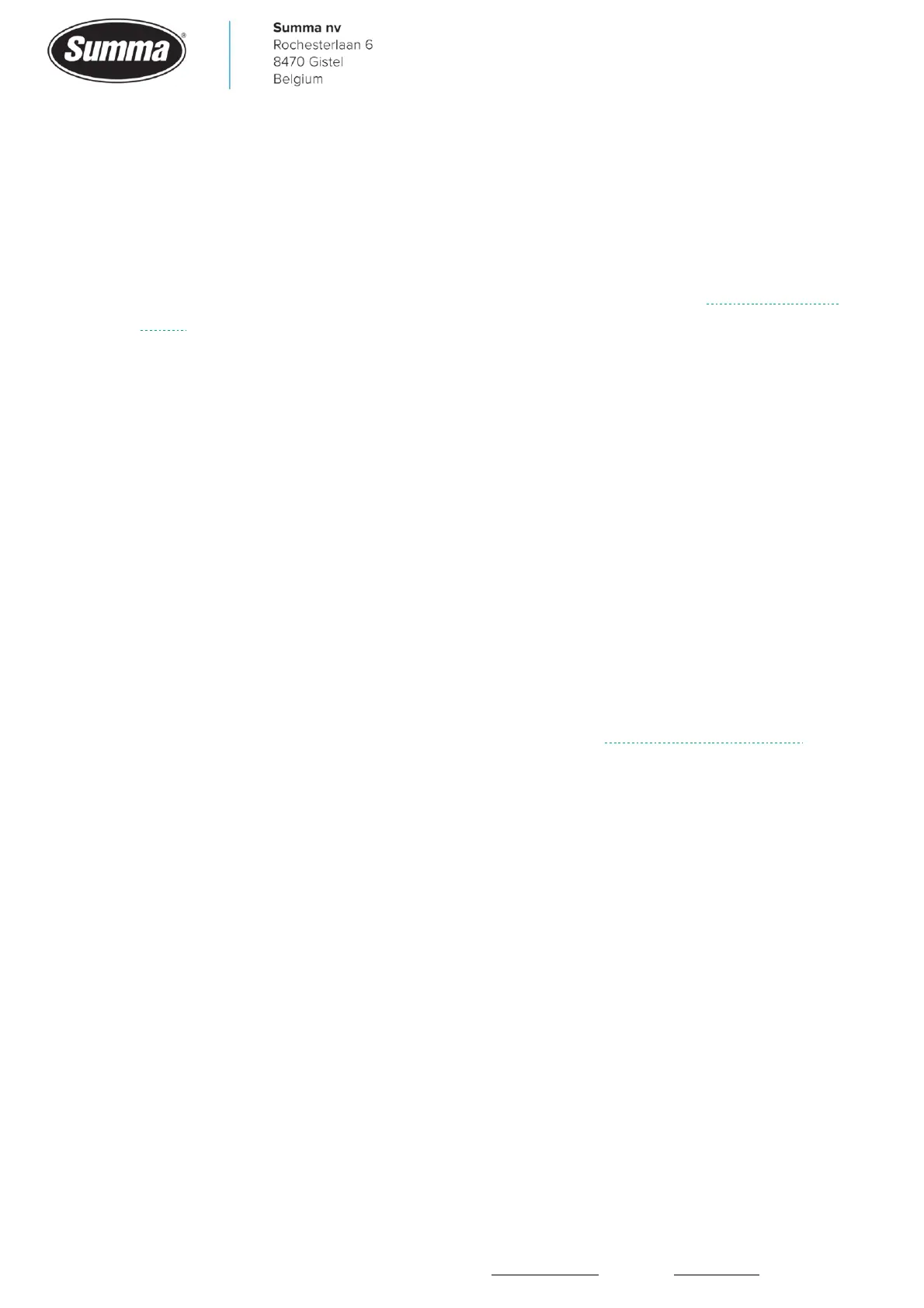 Summa nv Tel +32 59 27 00 11 Fax +32 59 27 00 63 Email support@summa.com Website www.summa.com Page 63 of 76