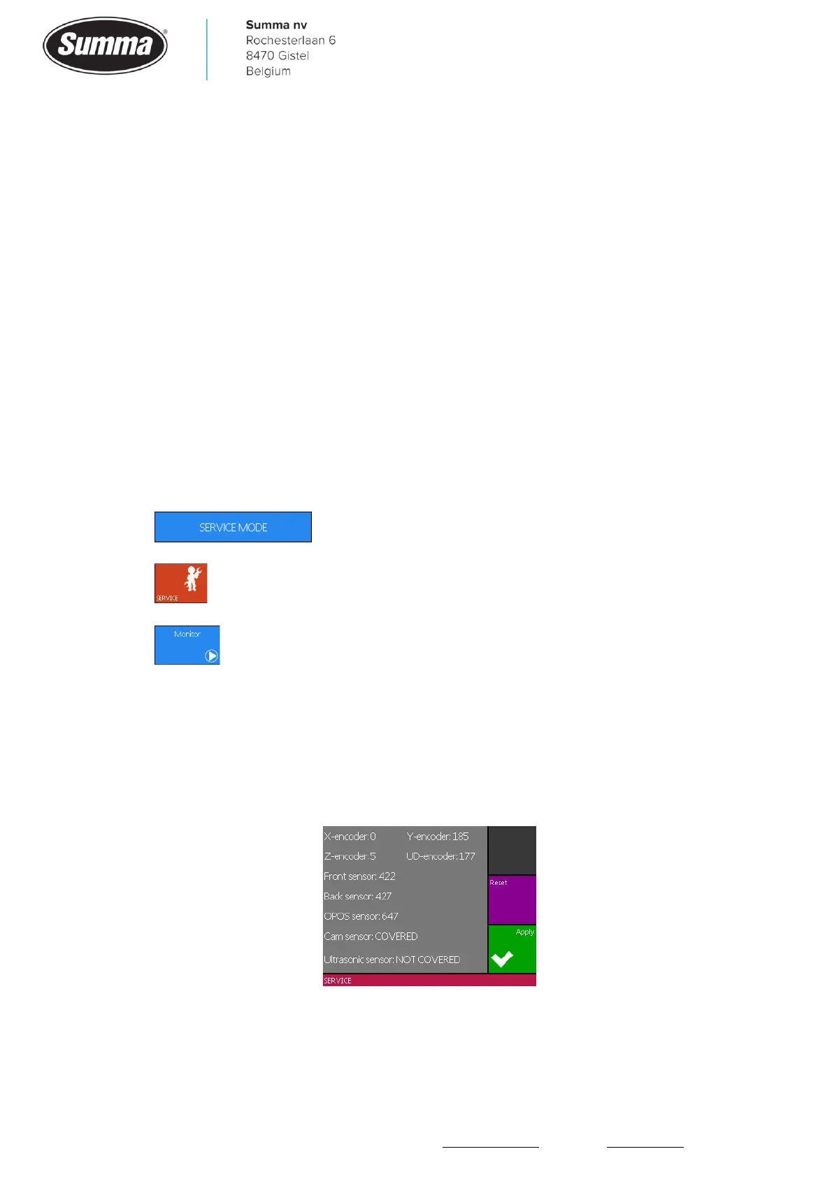 Summa nv Tel +32 59 27 00 11 Fax +32 59 27 00 63 Email support@summa.com Website www.summa.com Page 66 of 76